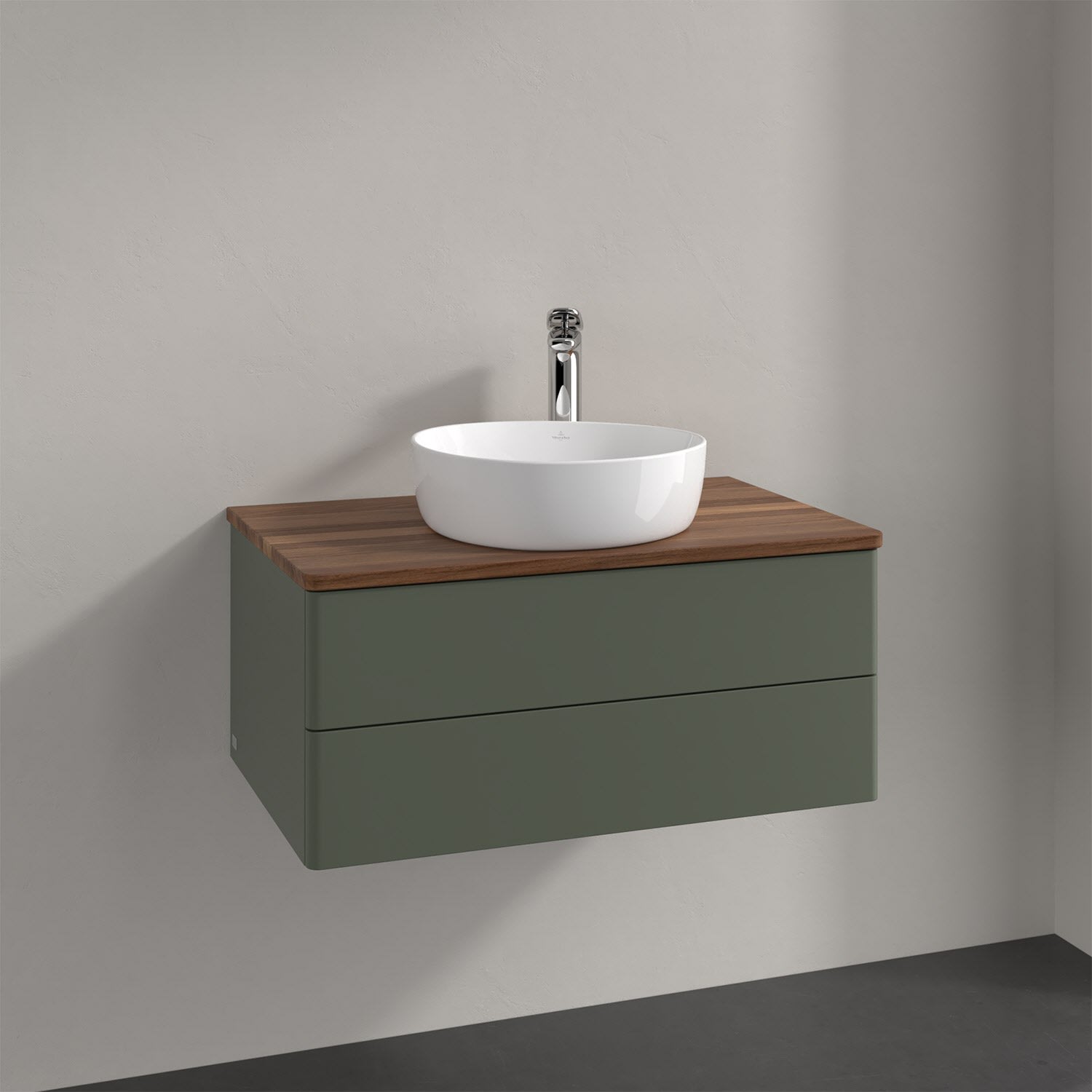 Villeroy & Boch Antao Waschbeckenunterschrank, 80 x 36 cm, 2 Auszüge mit LED-Licht, Front ohne Struktur, mit Hahnloch