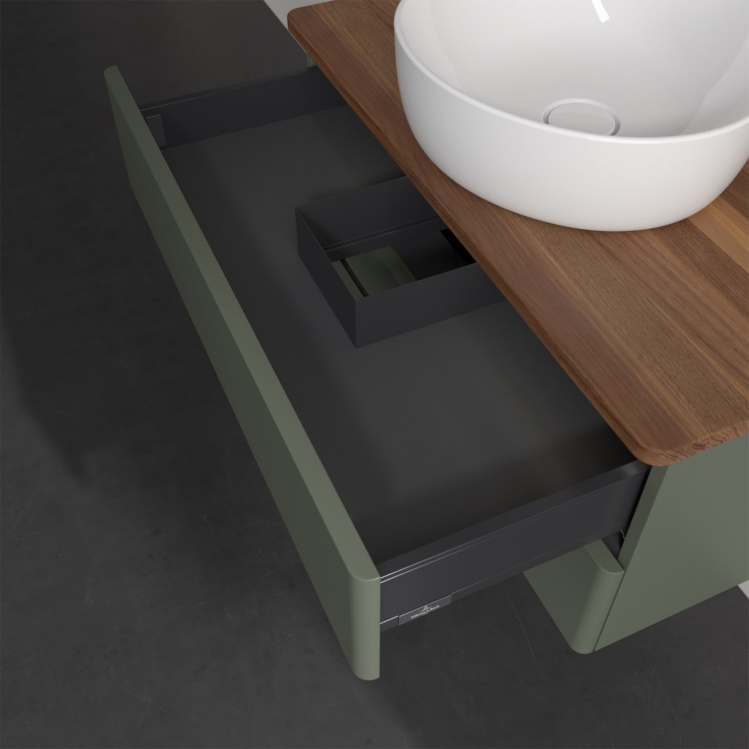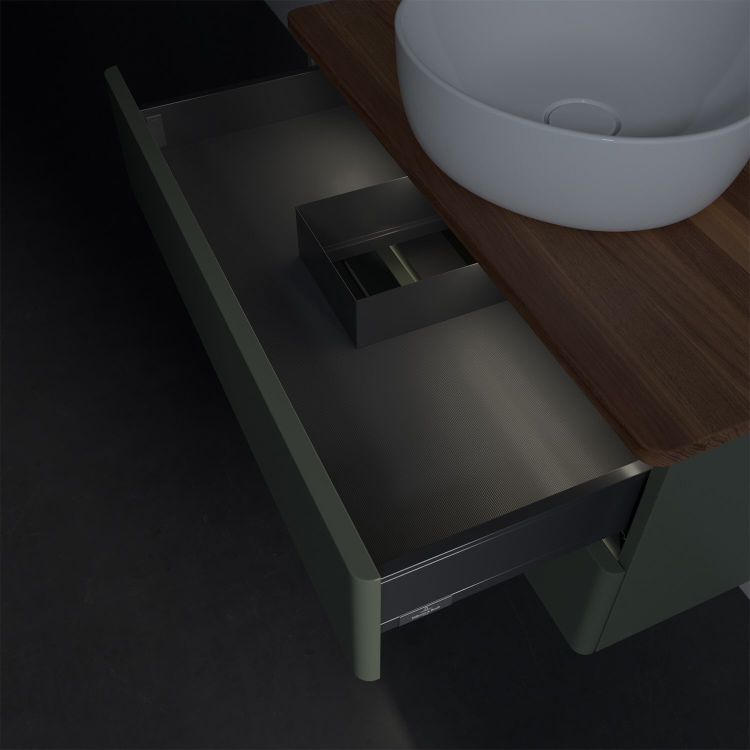 Mit dem wandhängenden Waschtischunterschrank der Kollektion Antao wird ein natürliches und gemütliches Flair am Waschplatz geschaffen. Dafür sorgen die sanfte Formsprache und die abgerundete Kanten des hochwertigen Badmöbels. Die wichtigsten Badutensilien für die tägliche Routine können seitlich des Waschtischs auf die Waschtischplatte gestellt werden. Ansonsten bieten zwei Auszüge inklusive warmweißer Beleuchtung und Antirutschboden ausreichend Platz für weitere Produkte, die garantiert bleiben, wo sie hingehören. Der Unterschrank verfügt zudem über einen Vollauszug und Selbsteinzug mit SoftClosing Funktion, damit er bequem und mühelos geöffnet und geschlossen werden kann. Gewohnte Qualität von Villeroy & Boch! Für eine besonders leichte Pflege sorgt die mehrschichtig deckend lackierte Oberfläche. Bei der Ausführung in Massivholz wird dank des verarbeiteten Massivholzes jedes Möbel zu einem Unikat, das sich durch das lebendige Naturmaterial durch seine einzigartige Struktur und Maserung auszeichnet.