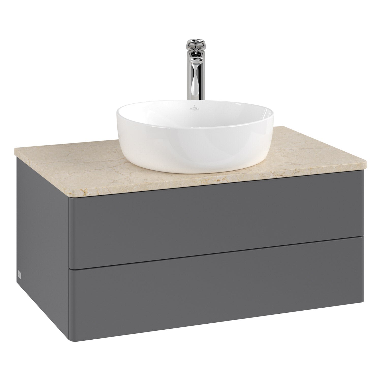 Villeroy & Boch Antao Waschbeckenunterschrank, 80 x 36 cm, 2 Auszüge mit LED-Licht, Front ohne Struktur, mit Hahnloch