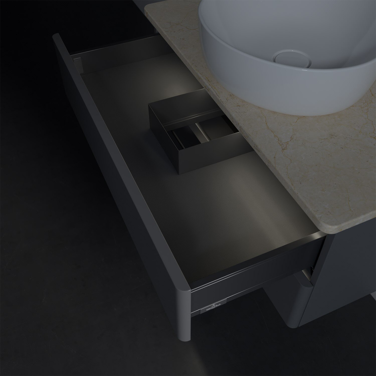- kein Umfallen oder Verrutschen von Pflegeprodukten in den Schubladen dank rutschhemmendem Boden