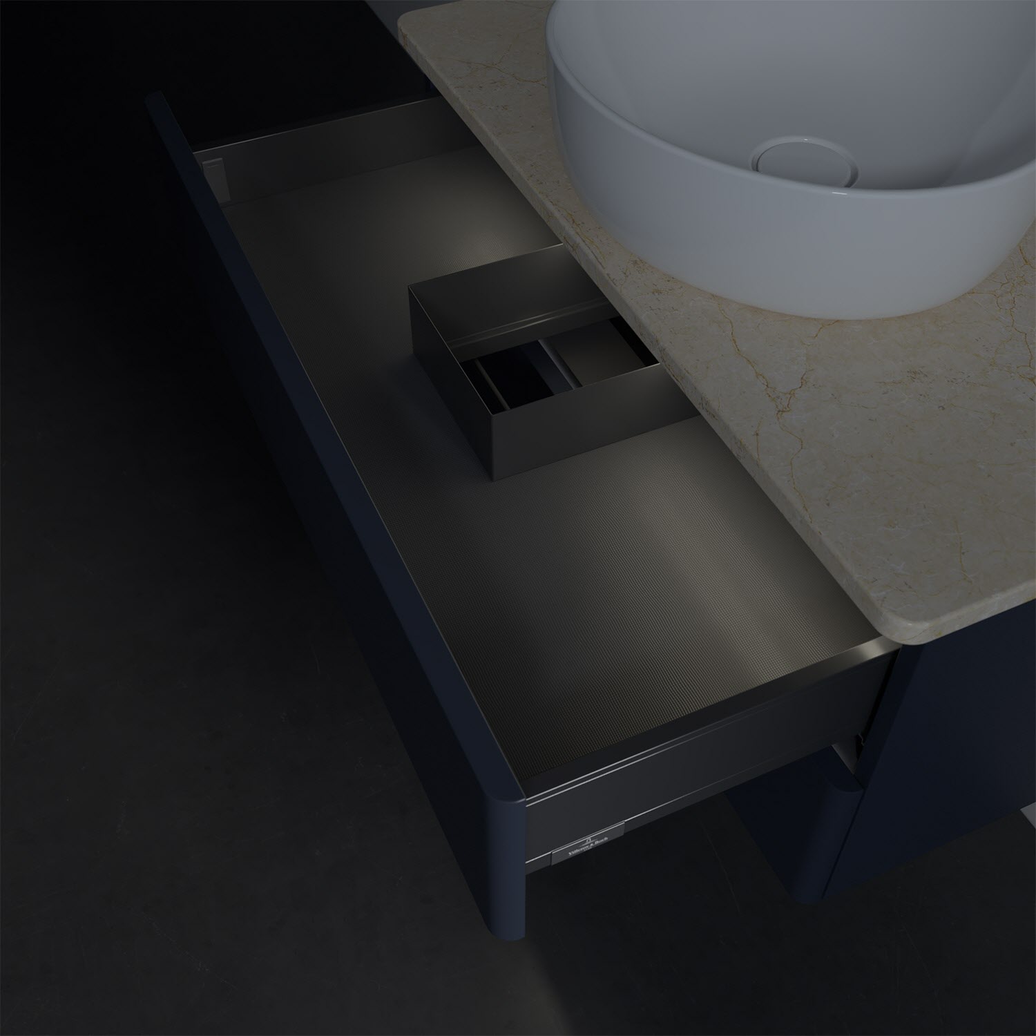 - kein Umfallen oder Verrutschen von Pflegeprodukten in den Schubladen dank rutschhemmendem Boden