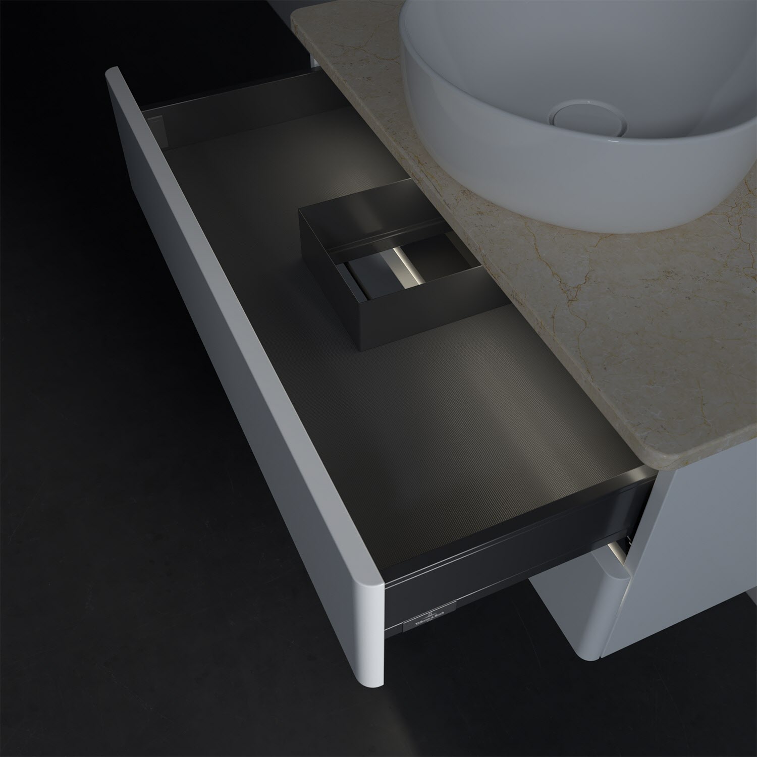 - kein Umfallen oder Verrutschen von Pflegeprodukten in den Schubladen dank rutschhemmendem Boden