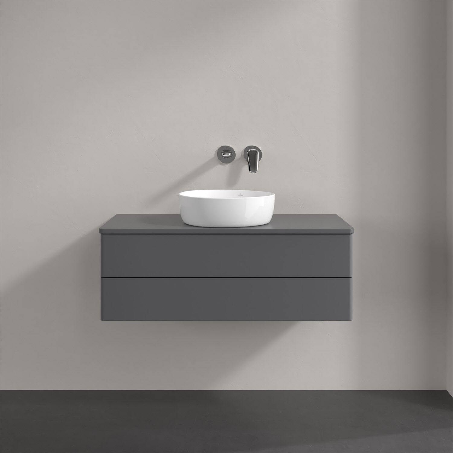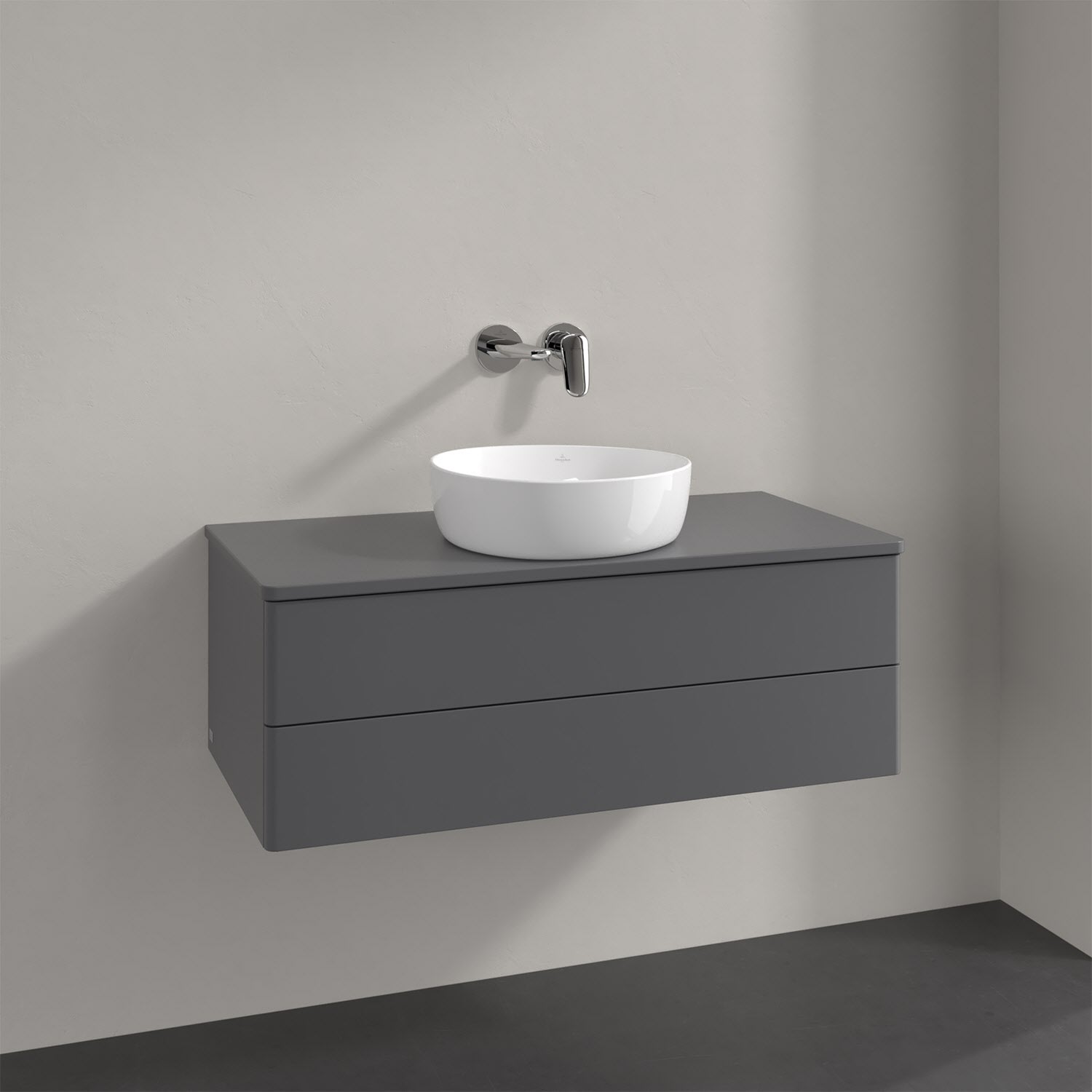 Villeroy & Boch Antao Waschbeckenunterschrank, 100 x 36 cm, 2 Auszüge mit LED-Licht, Front ohne Struktur, mit Hahnloch