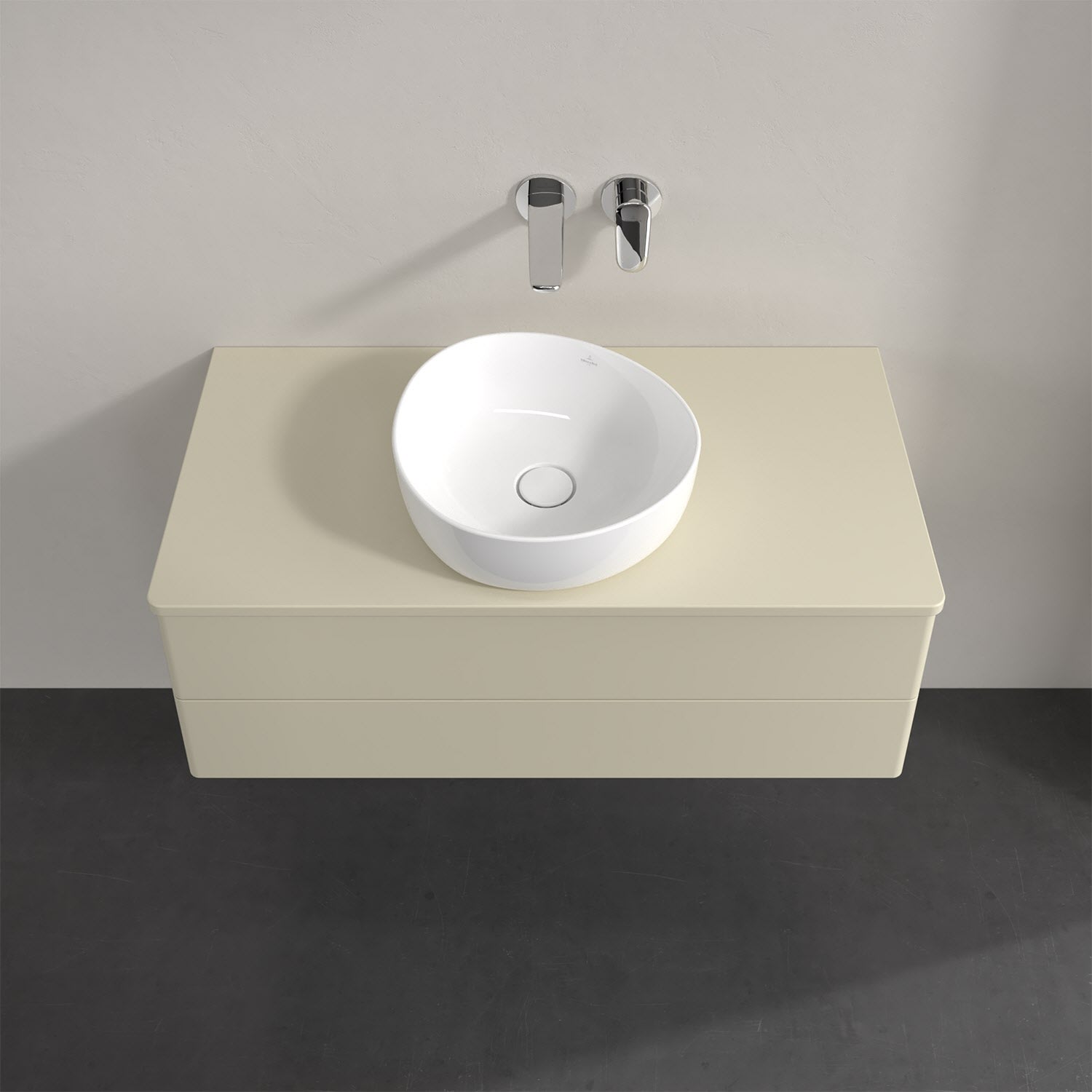 Villeroy & Boch Antao Waschbeckenunterschrank, 100 x 36 cm, 2 Auszüge mit LED-Licht, Front ohne Struktur, mit Hahnloch