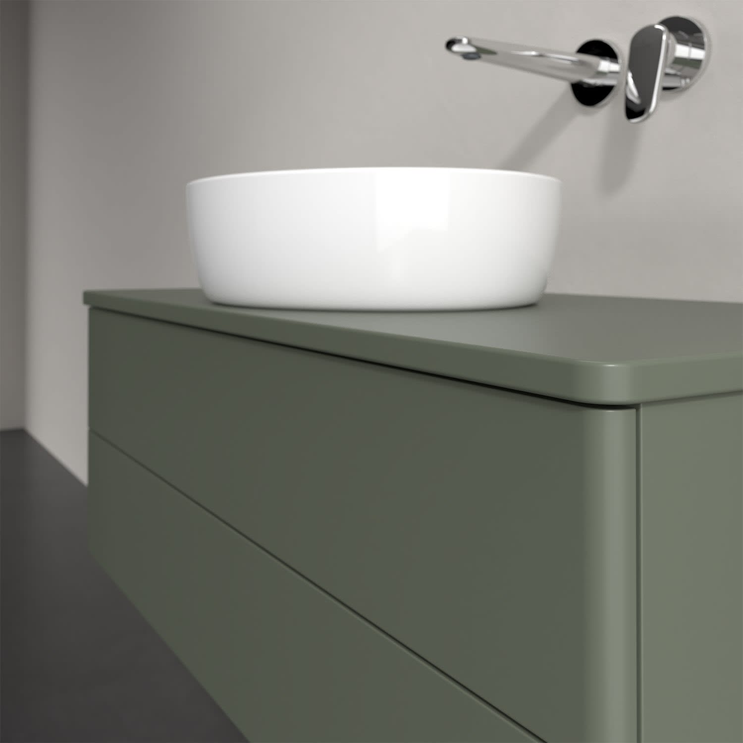 Für diesen Waschbeckenunterschrank stehen Ihnen Aufsatzwaschtische aus verschiedenen Serien zur Verfügung (siehe "Passliste" unter Downloads). Ein ausgewähltes Beispiel finden Sie im Zubehör. Den Waschtisch bitte separat mitbestellen.