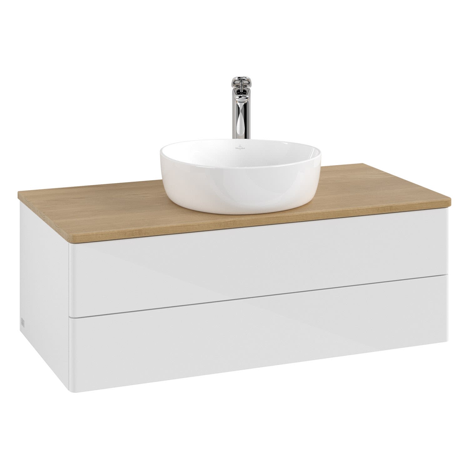 Villeroy & Boch Antao Waschbeckenunterschrank, 100 x 36 cm, 2 Auszüge mit LED-Licht, Front ohne Struktur, mit Hahnloch