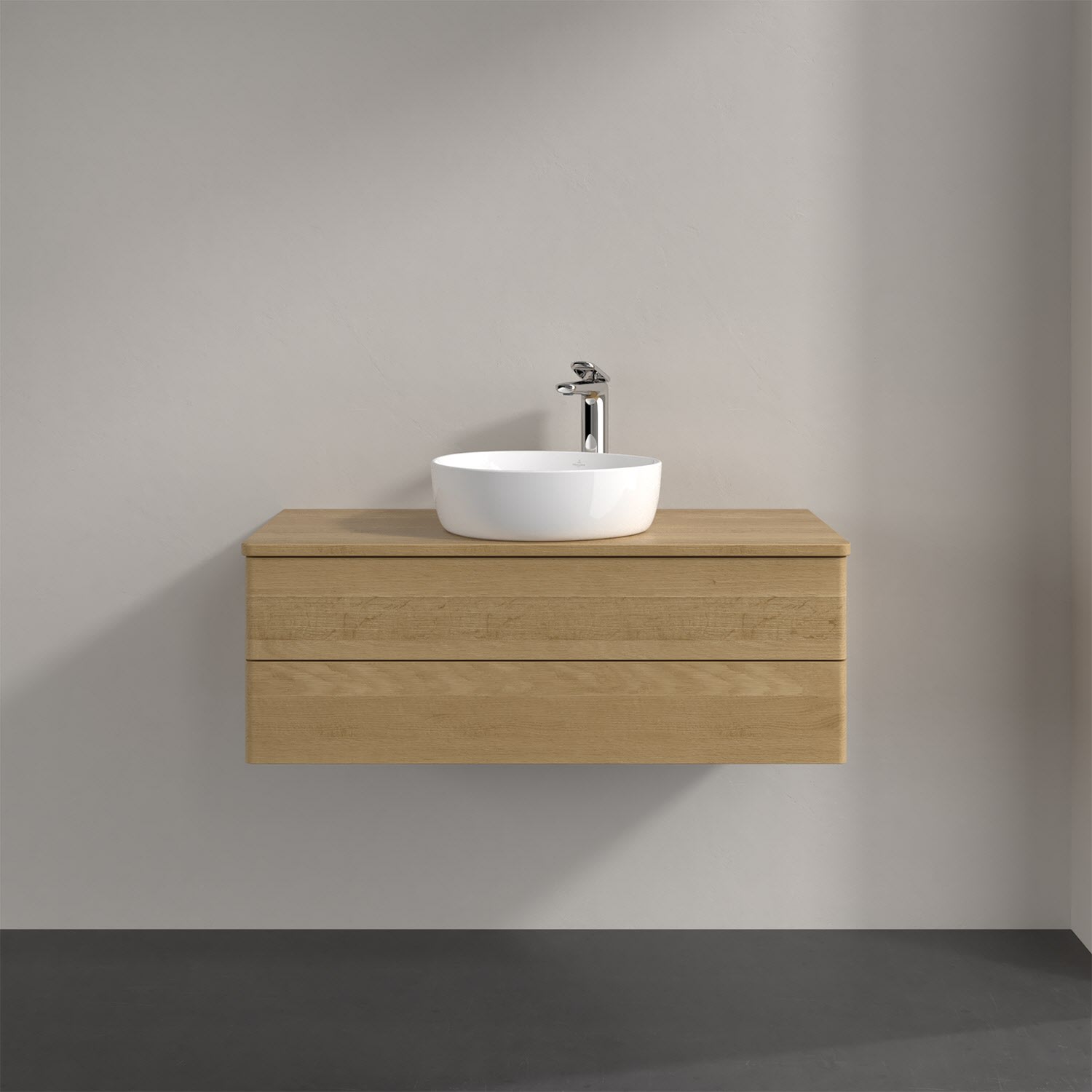 Villeroy & Boch Antao Waschbeckenunterschrank, 100 x 36 cm, 2 Auszüge mit LED-Licht, Front ohne Struktur, mit Hahnloch
