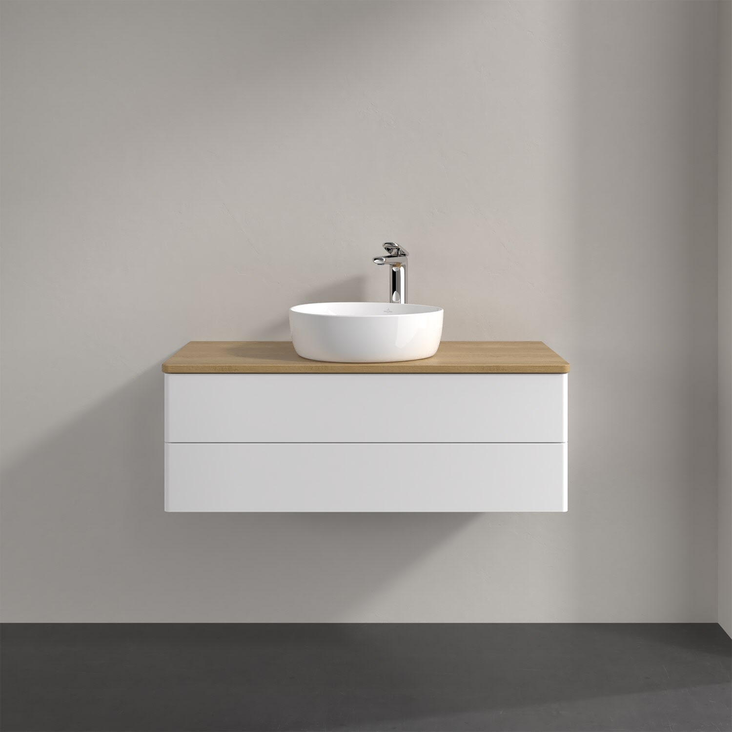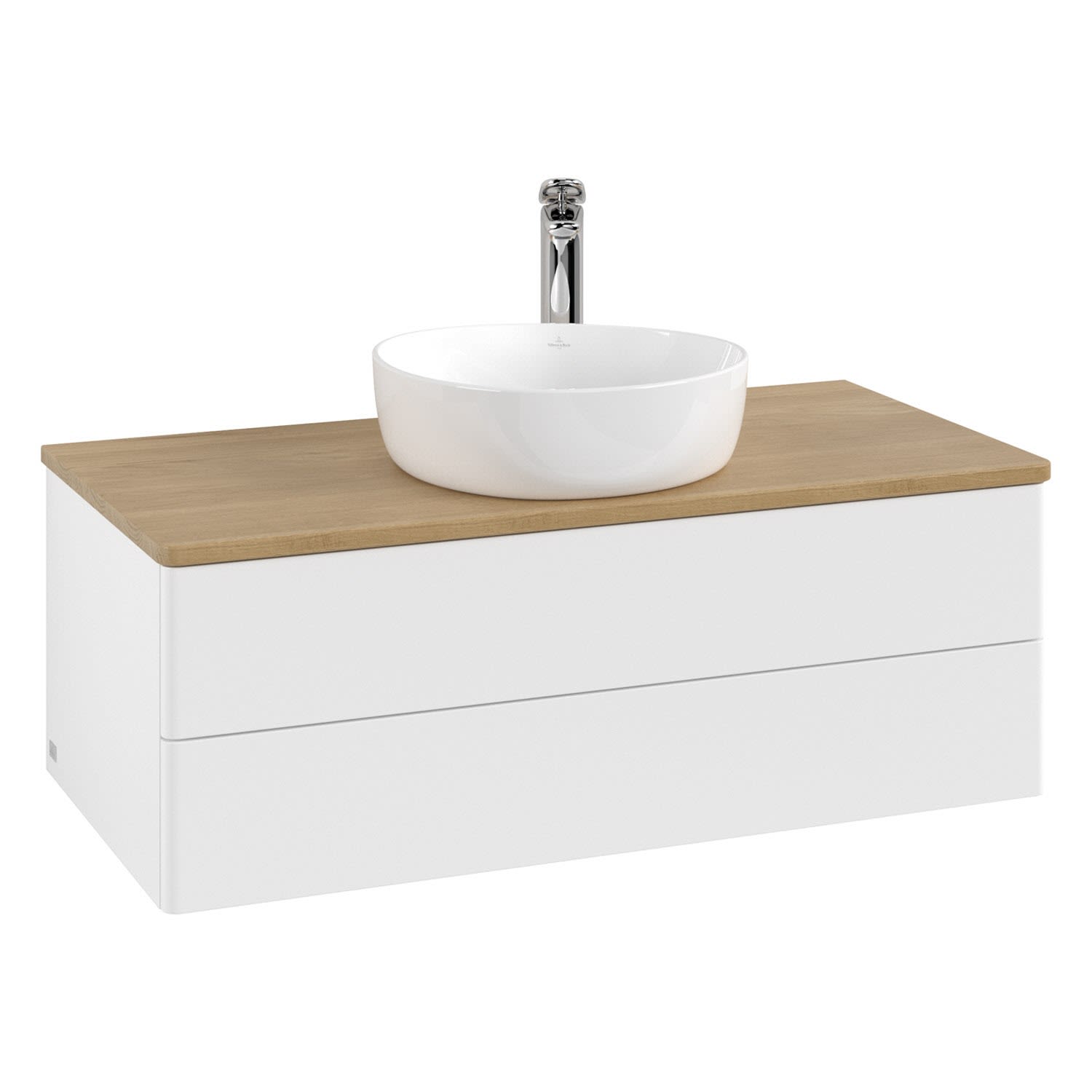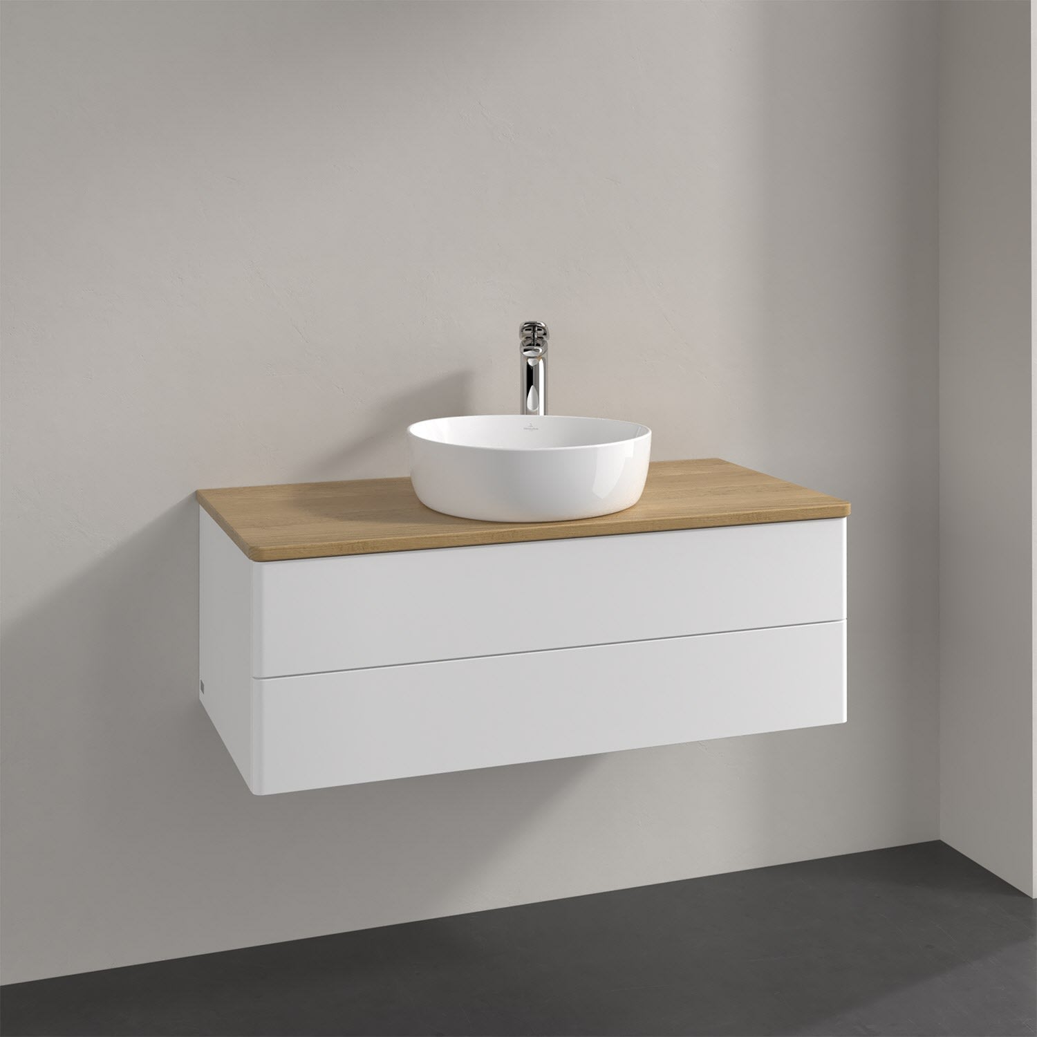 Villeroy & Boch Antao Waschbeckenunterschrank, 100 x 36 cm, 2 Auszüge mit LED-Licht, Front ohne Struktur, mit Hahnloch