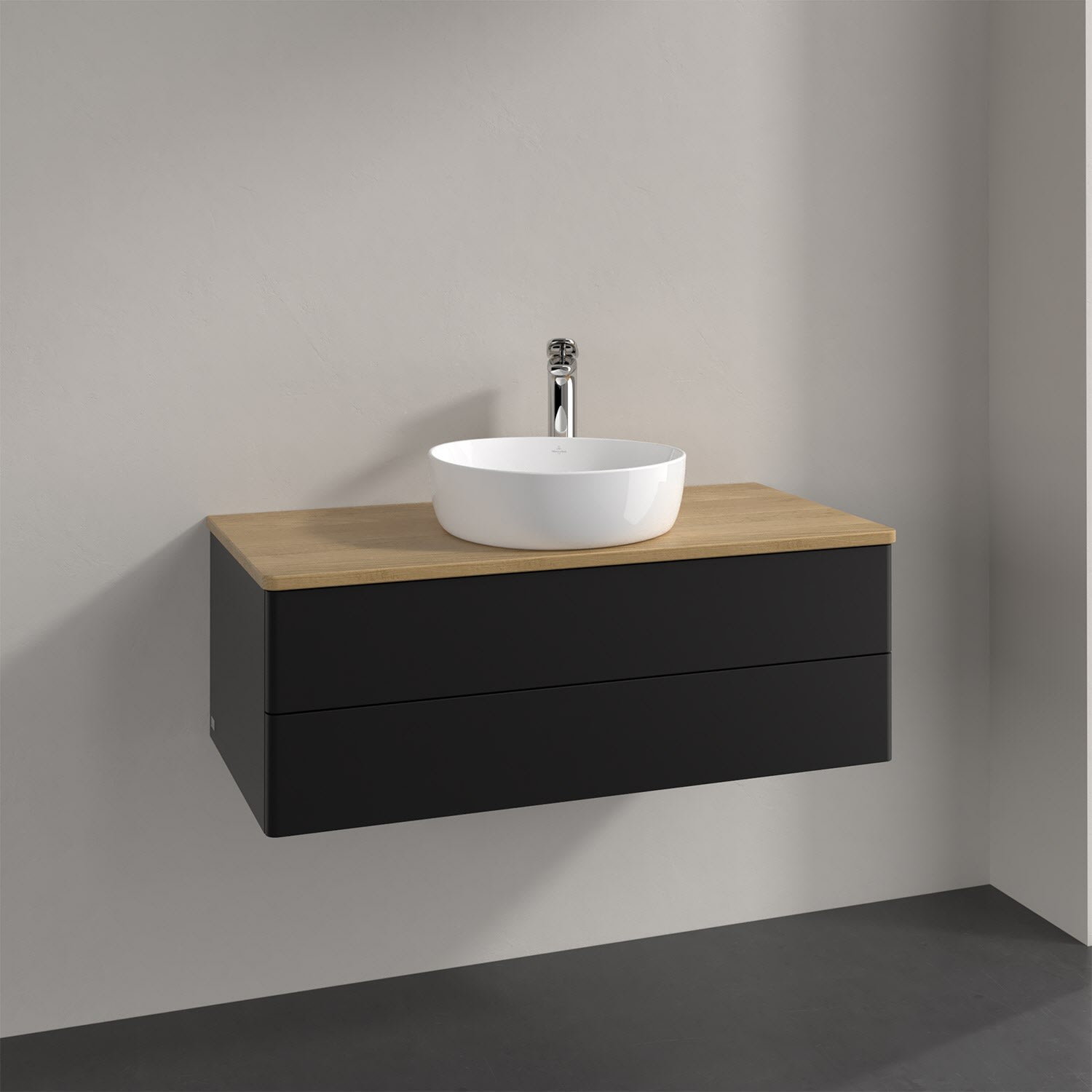 Villeroy & Boch Antao Waschbeckenunterschrank, 100 x 36 cm, 2 Auszüge mit LED-Licht, Front ohne Struktur, mit Hahnloch
