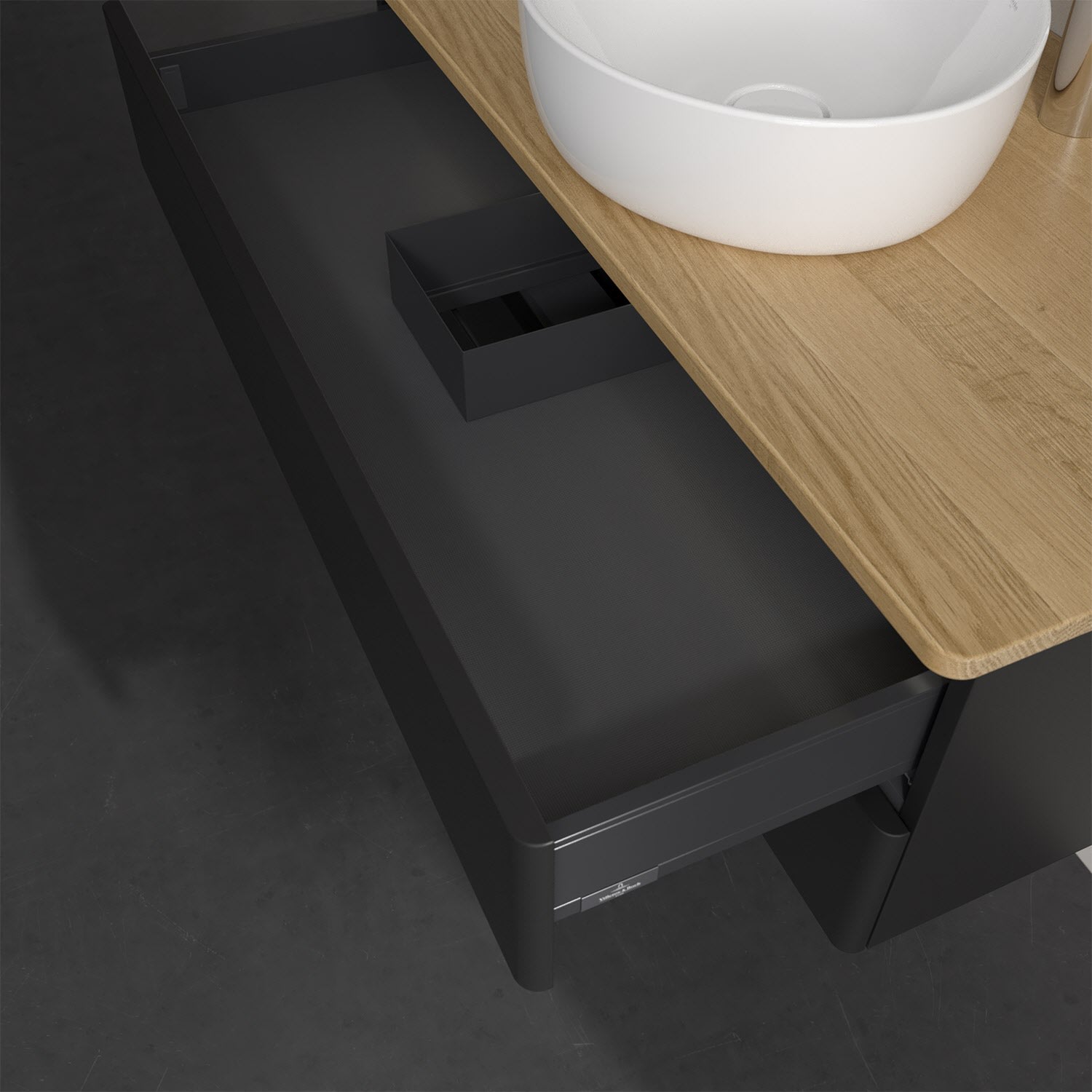 - kein Umfallen oder Verrutschen von Pflegeprodukten in den Schubladen dank rutschhemmendem Boden