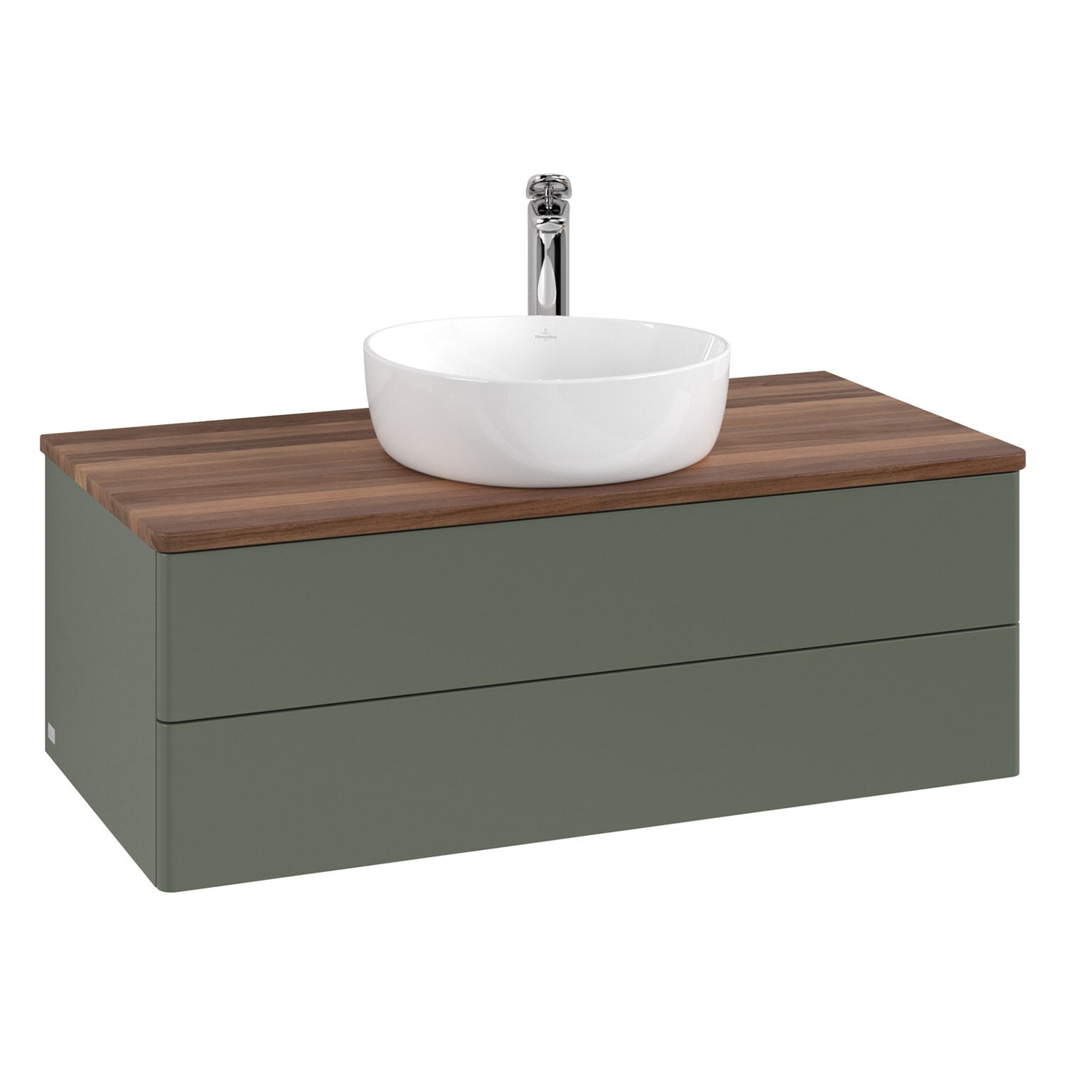 Villeroy & Boch Antao Waschbeckenunterschrank, 100 x 36 cm, 2 Auszüge mit LED-Licht, Front ohne Struktur, mit Hahnloch