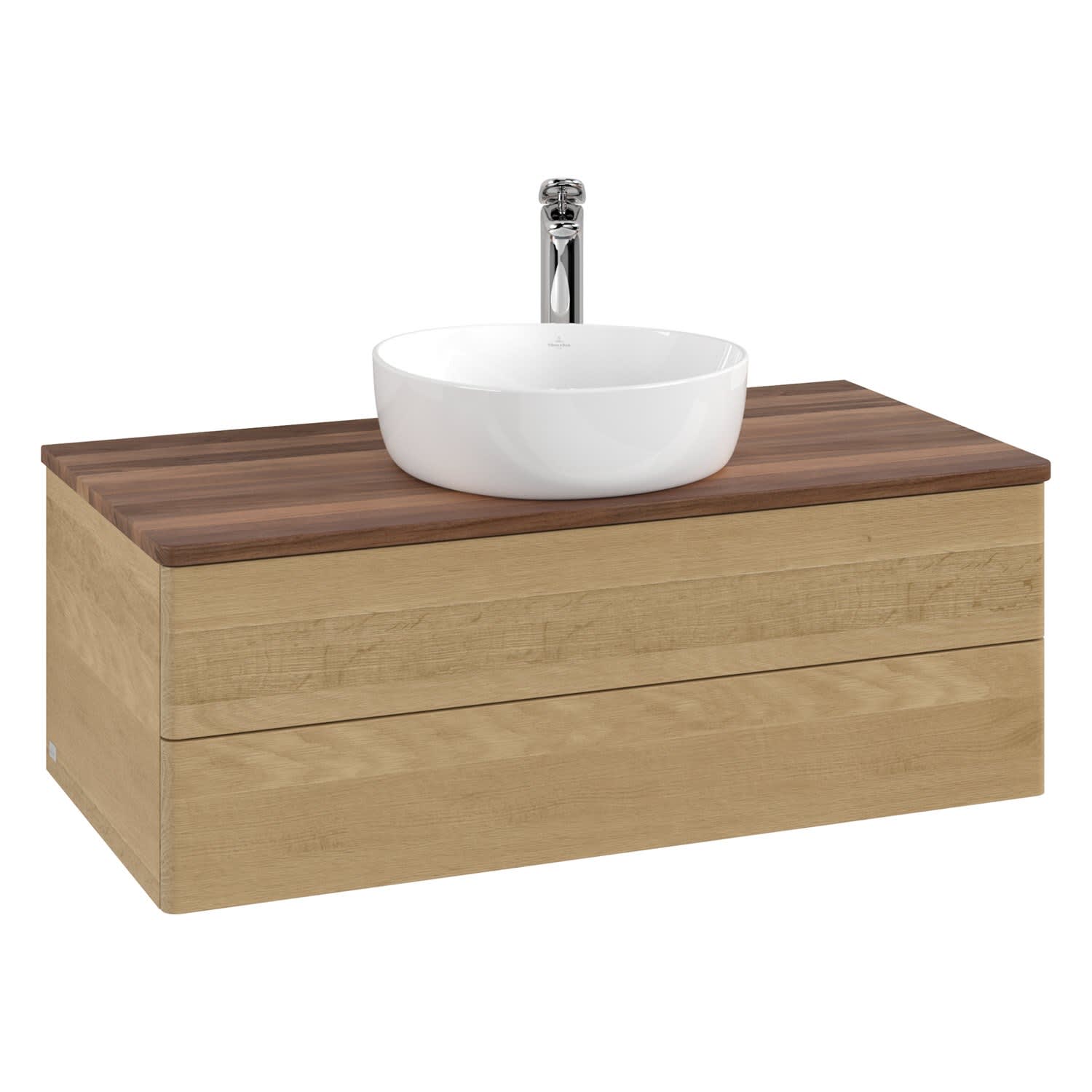 Villeroy & Boch Antao Waschbeckenunterschrank, 100 x 36 cm, 2 Auszüge mit LED-Licht, Front ohne Struktur, mit Hahnloch