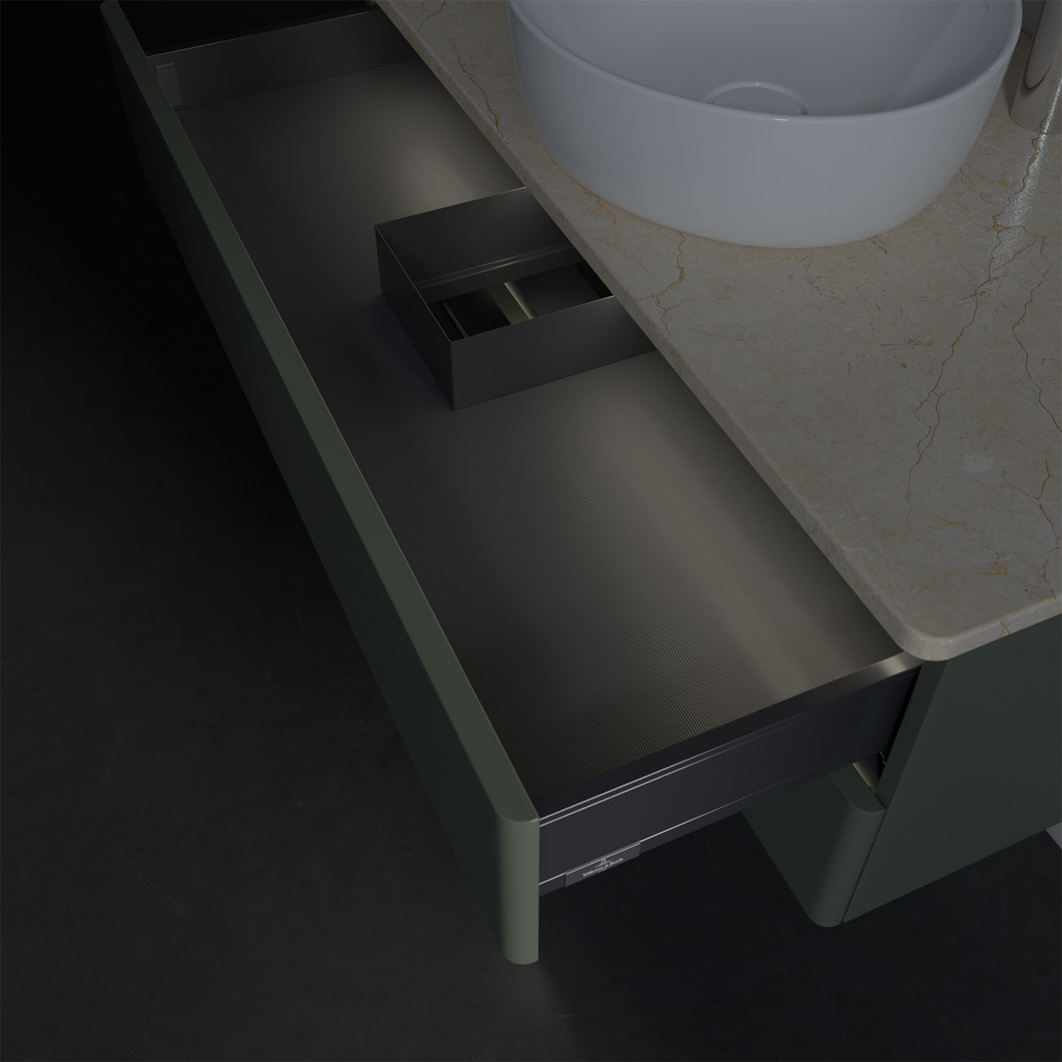 - kein Umfallen oder Verrutschen von Pflegeprodukten in den Schubladen dank rutschhemmendem Boden