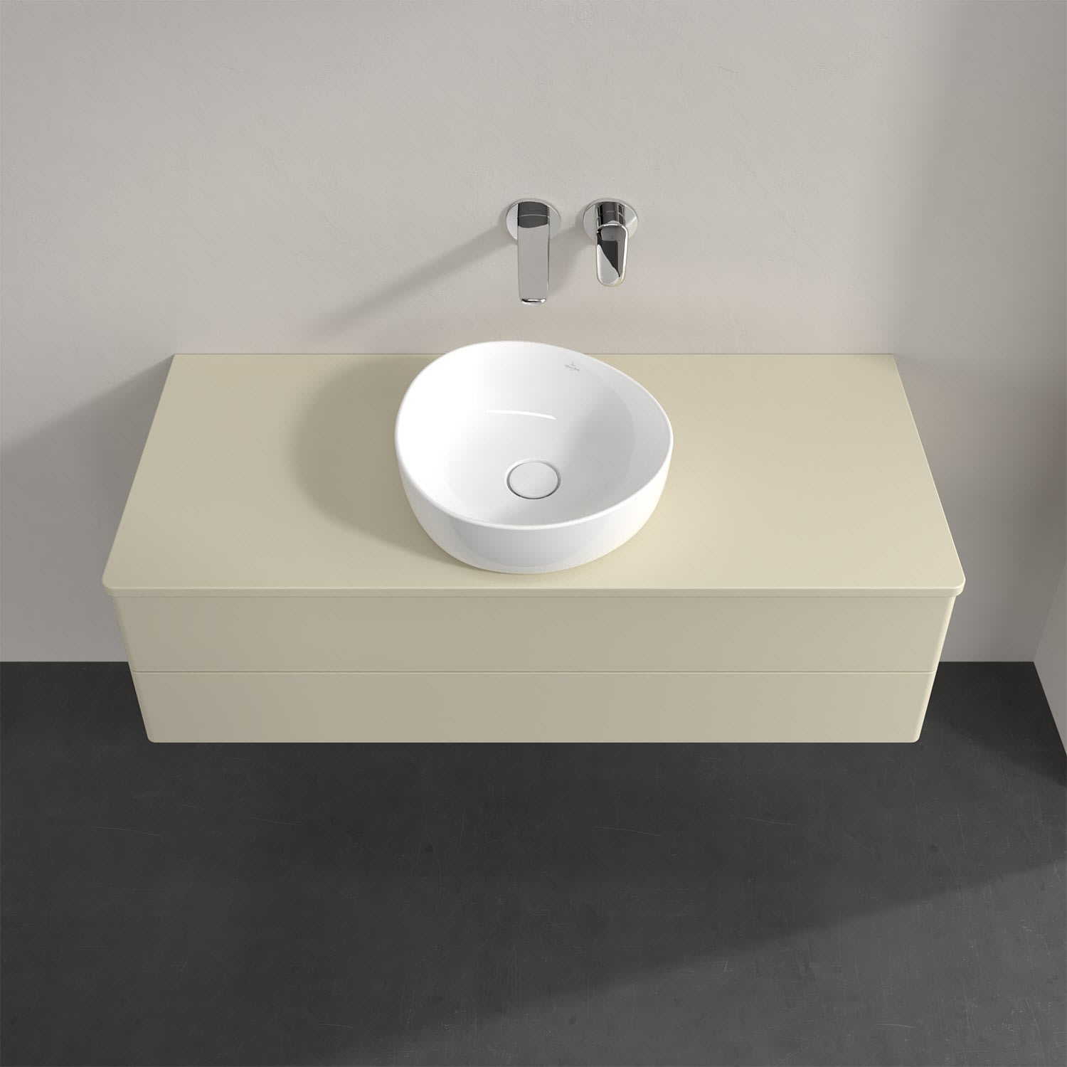 Für diesen Waschbeckenunterschrank stehen Ihnen Aufsatzwaschtische aus verschiedenen Serien zur Verfügung (siehe "Passliste" unter Downloads). Ein ausgewähltes Beispiel finden Sie im Zubehör. Den Waschtisch bitte separat mitbestellen.
