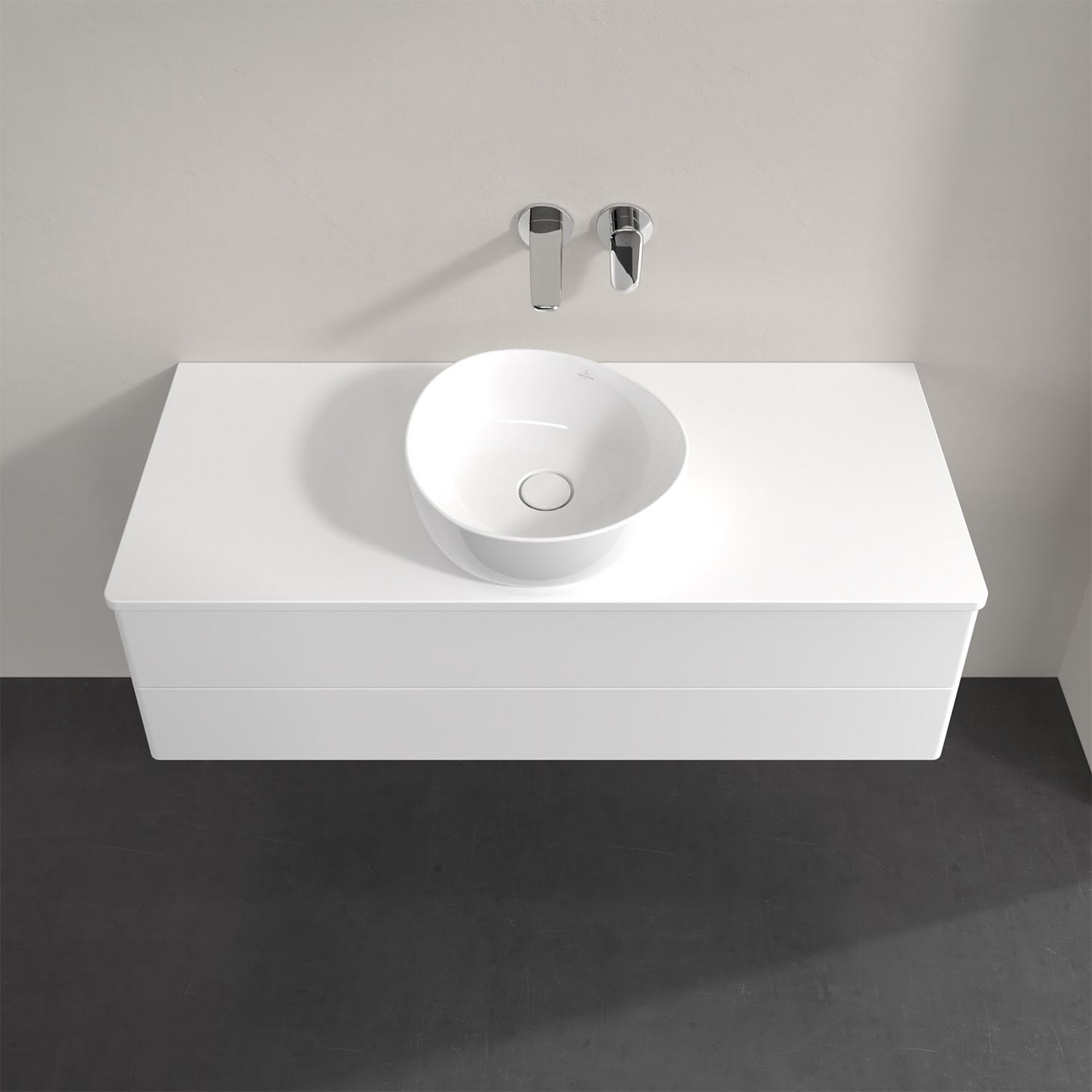 Für diesen Waschbeckenunterschrank stehen Ihnen Aufsatzwaschtische aus verschiedenen Serien zur Verfügung (siehe "Passliste" unter Downloads). Ein ausgewähltes Beispiel finden Sie im Zubehör. Den Waschtisch bitte separat mitbestellen.