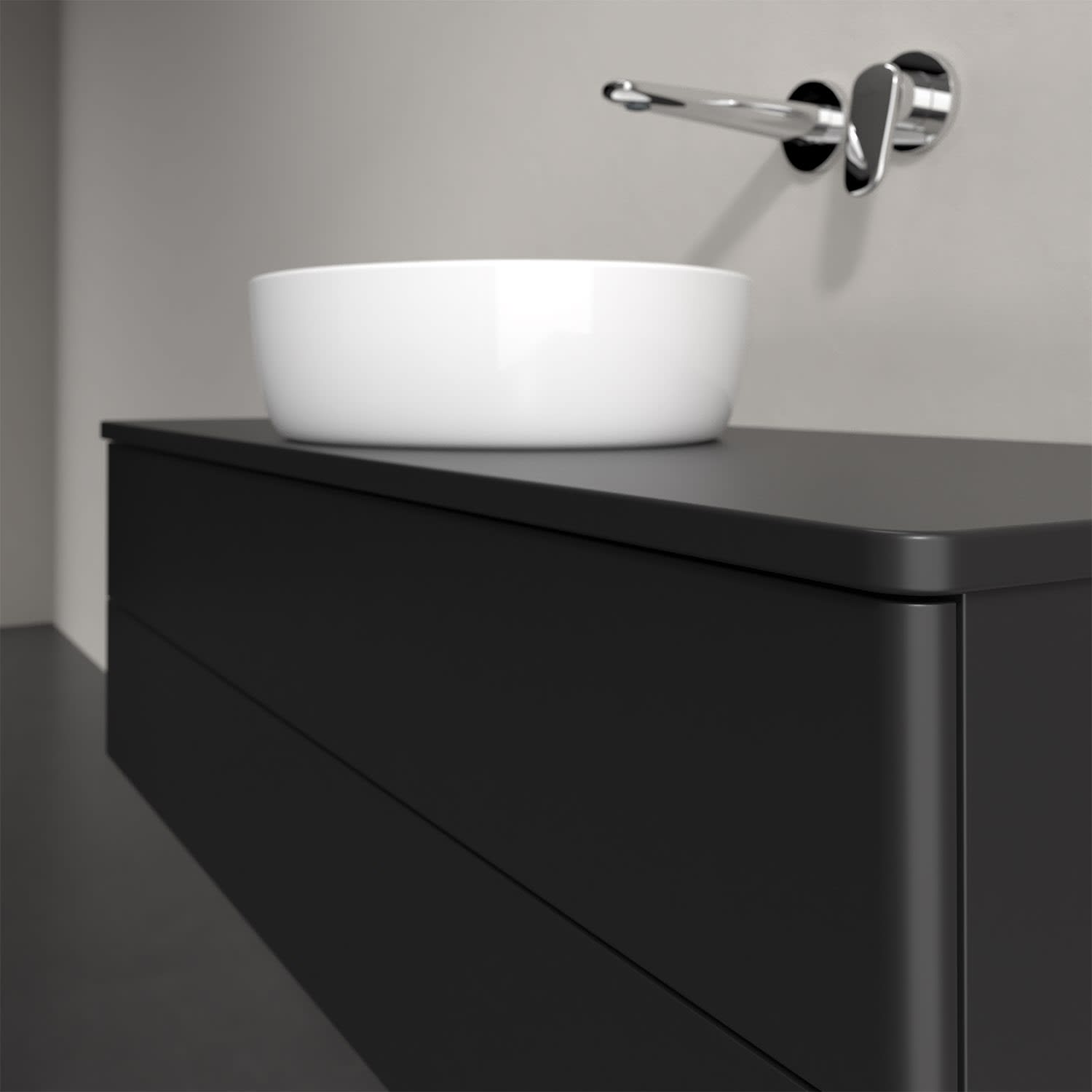 Für diesen Waschbeckenunterschrank stehen Ihnen Aufsatzwaschtische aus verschiedenen Serien zur Verfügung (siehe "Passliste" unter Downloads). Ein ausgewähltes Beispiel finden Sie im Zubehör. Den Waschtisch bitte separat mitbestellen.