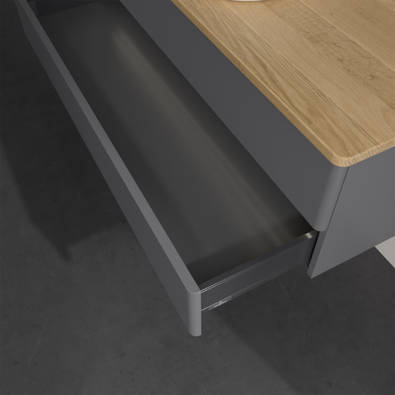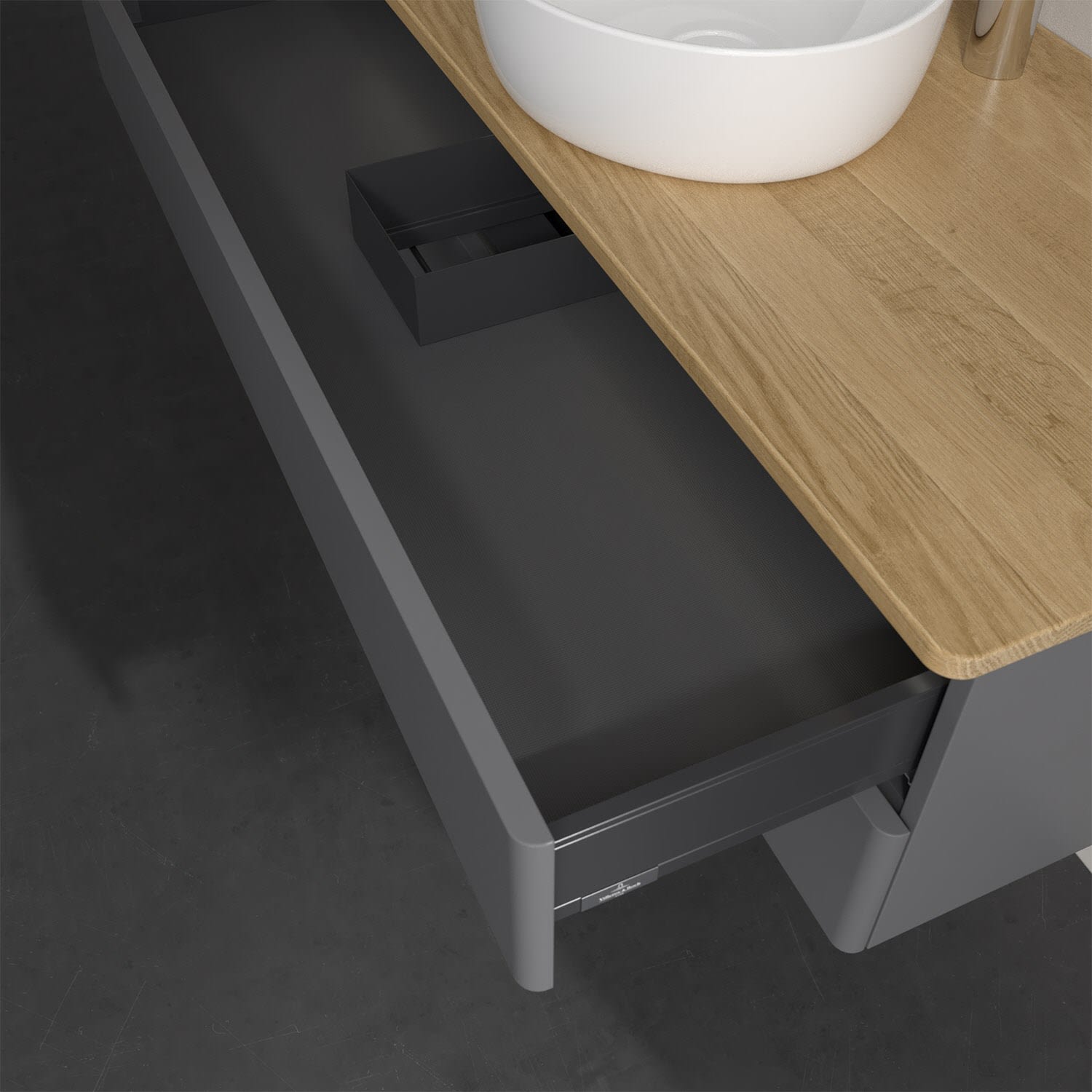 - kein Umfallen oder Verrutschen von Pflegeprodukten in den Schubladen dank rutschhemmendem Boden