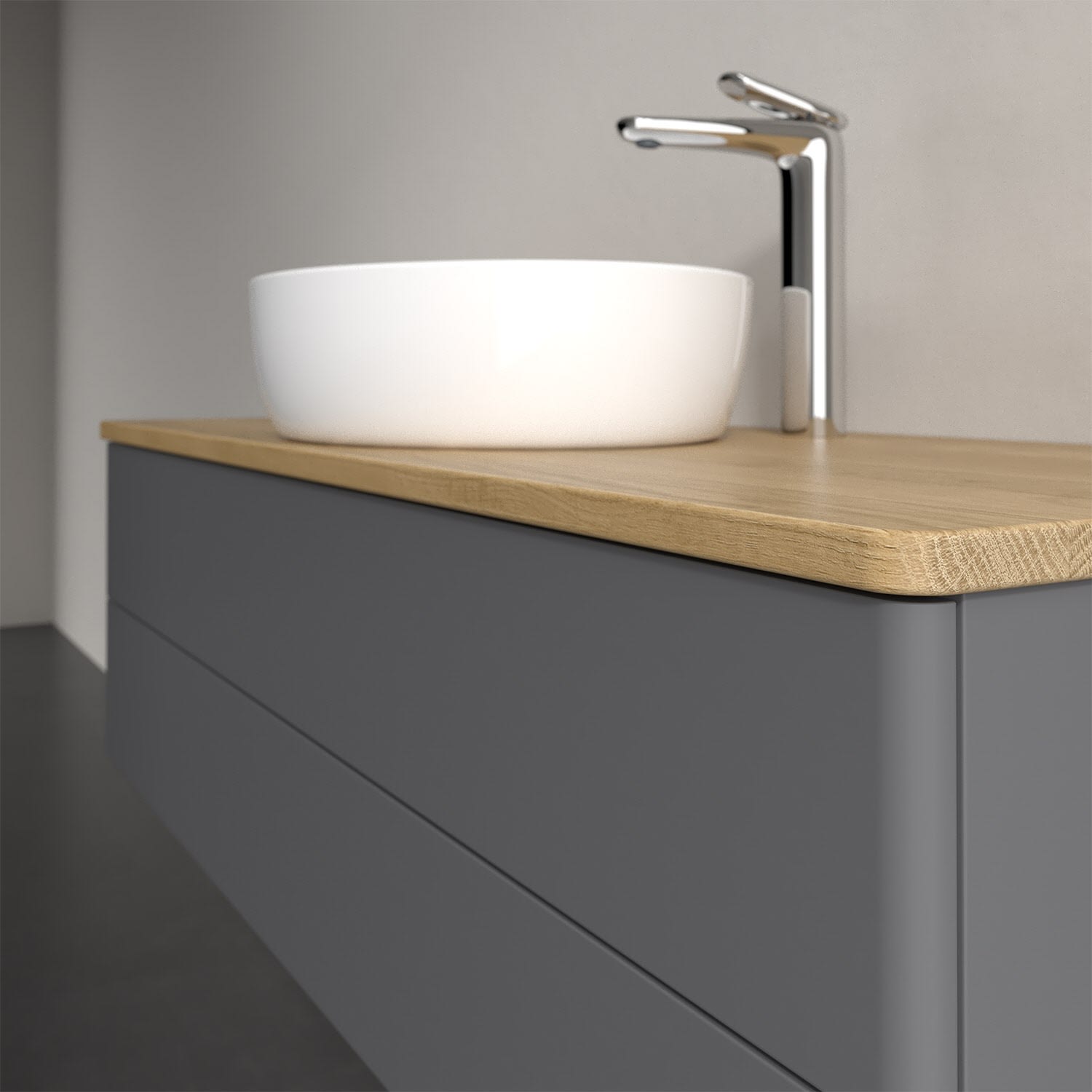 Für diesen Waschbeckenunterschrank stehen Ihnen Aufsatzwaschtische aus verschiedenen Serien zur Verfügung (siehe "Passliste" unter Downloads). Ein ausgewähltes Beispiel finden Sie im Zubehör. Den Waschtisch bitte separat mitbestellen.