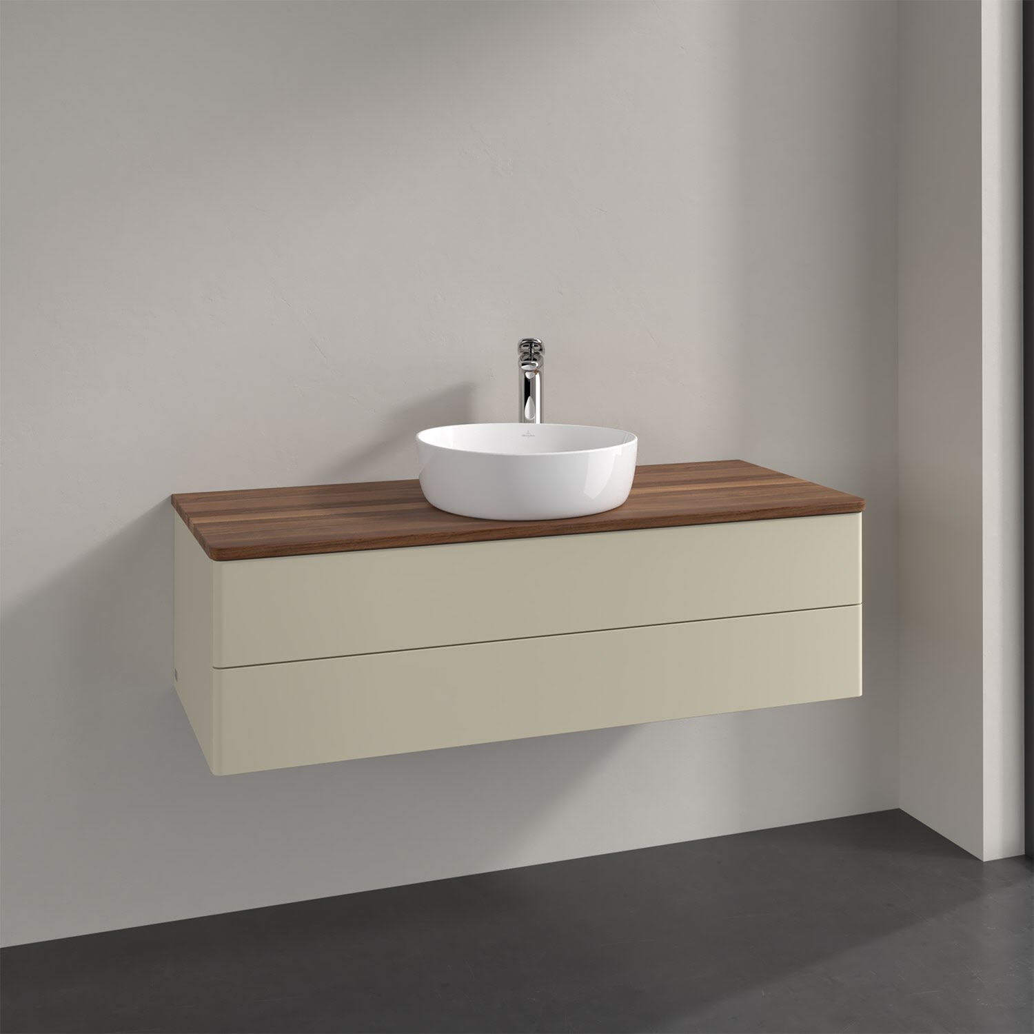 Villeroy & Boch Antao Waschbeckenunterschrank, 120 x 36 cm, 2 Auszüge mit LED-Licht, Front ohne Struktur, mit Hahnloch, für Waschtisch mittig