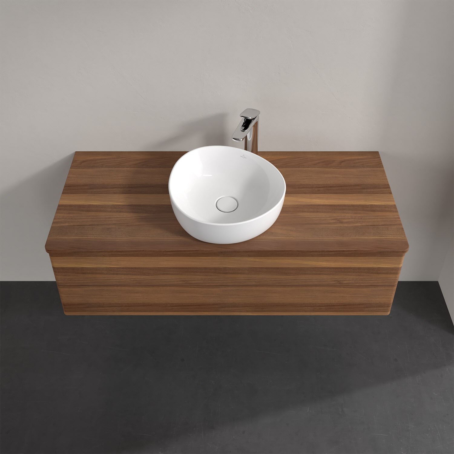 Für diesen Waschbeckenunterschrank stehen Ihnen Aufsatzwaschtische aus verschiedenen Serien zur Verfügung (siehe "Passliste" unter Downloads). Ein ausgewähltes Beispiel finden Sie im Zubehör. Den Waschtisch bitte separat mitbestellen.