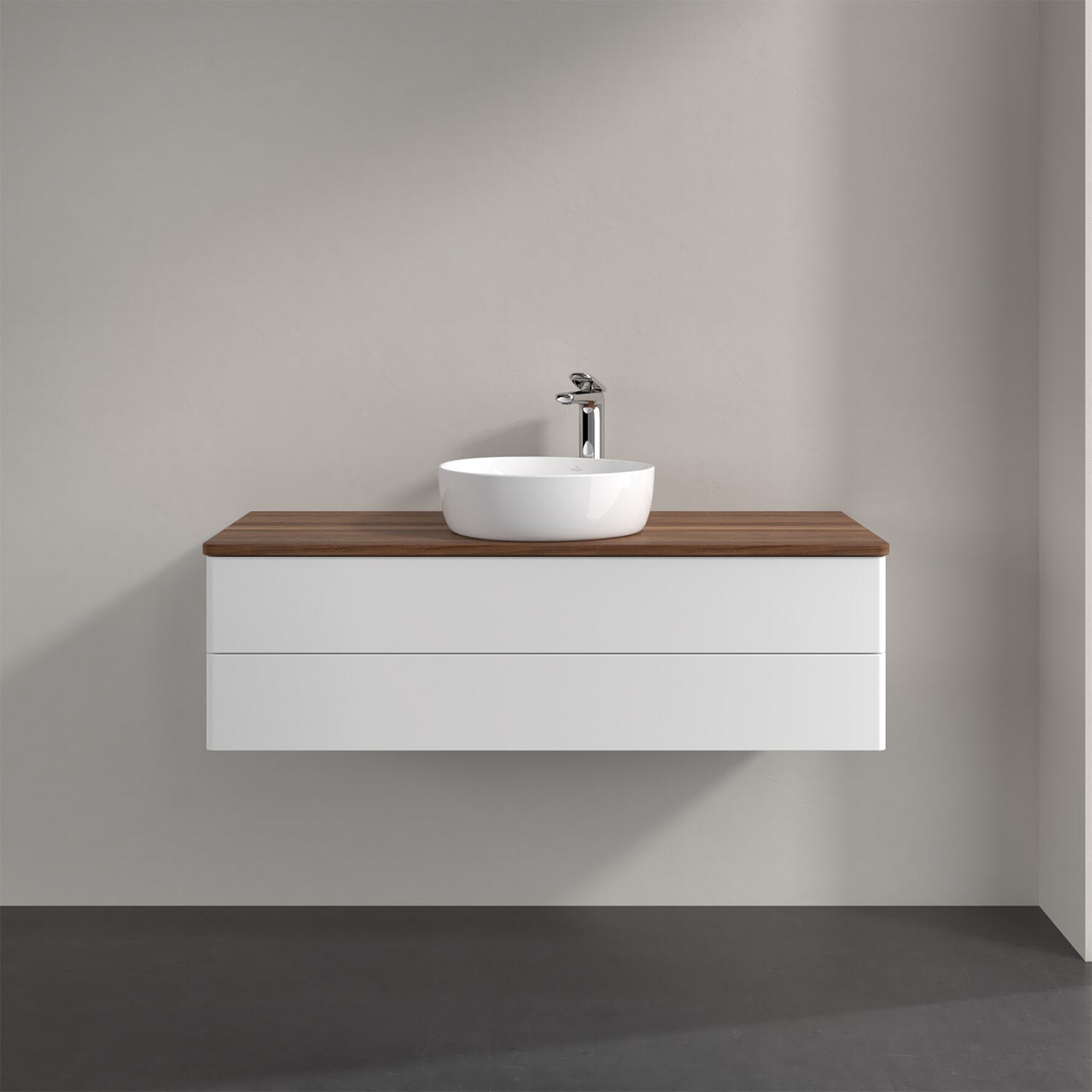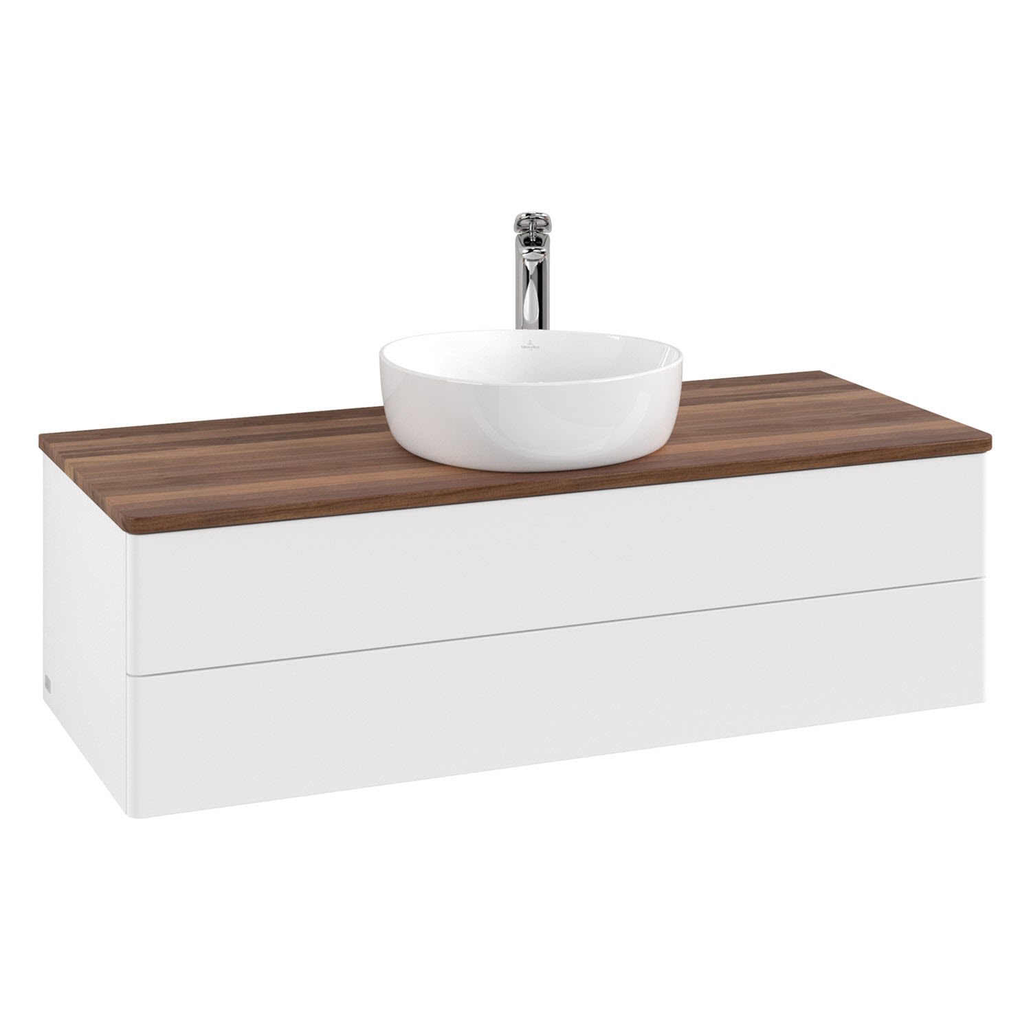 Villeroy & Boch Antao Waschbeckenunterschrank, 120 x 36 cm, 2 Auszüge mit LED-Licht, Front ohne Struktur, mit Hahnloch, für Waschtisch mittig