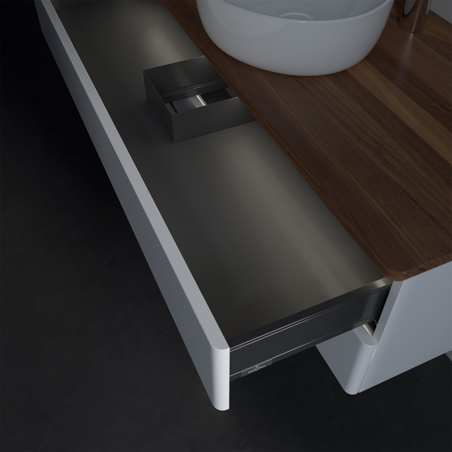 - kein Umfallen oder Verrutschen von Pflegeprodukten in den Schubladen dank rutschhemmendem Boden