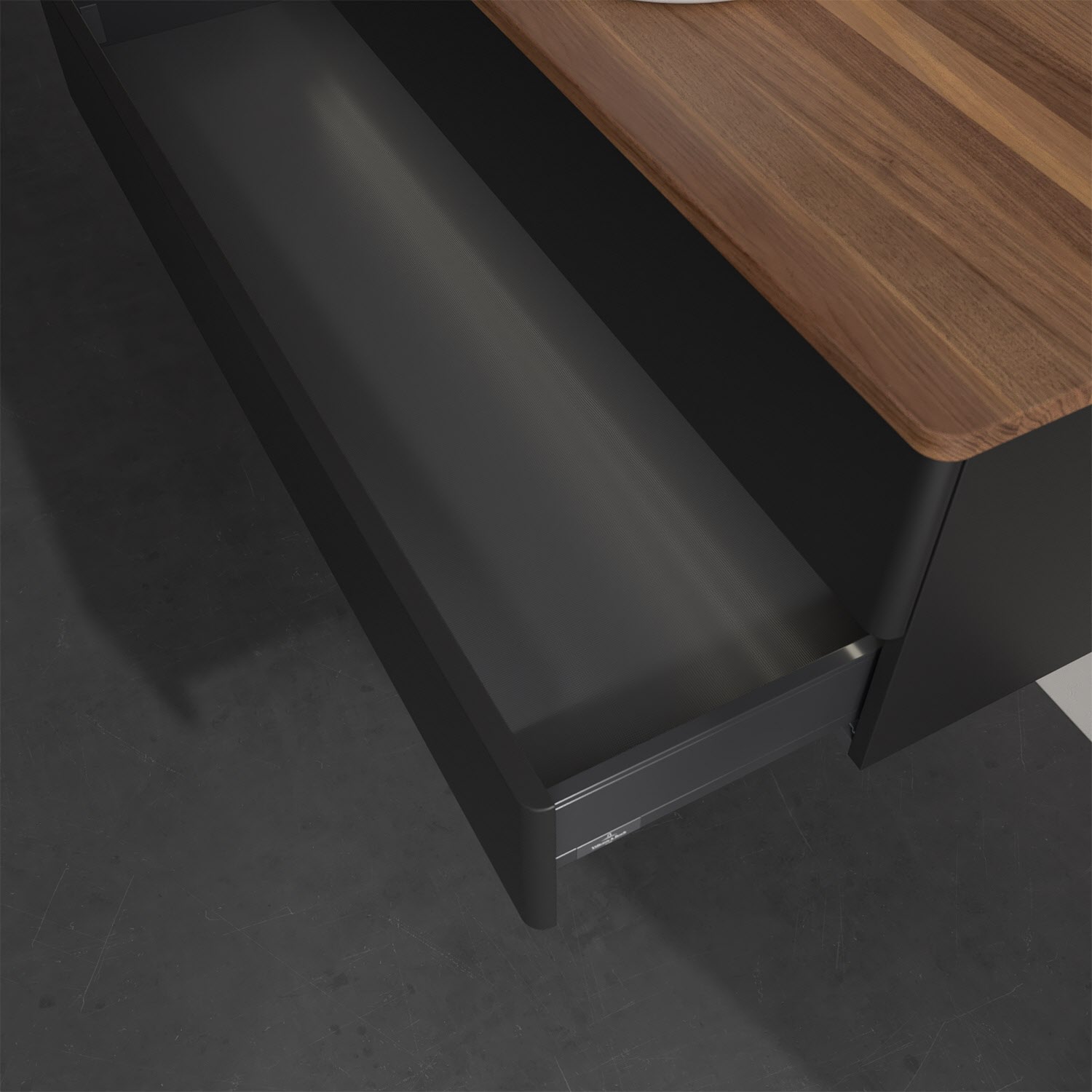 Villeroy & Boch Antao Waschbeckenunterschrank, 120 x 36 cm, 2 Auszüge mit LED-Licht, Front ohne Struktur, mit Hahnloch, für Waschtisch mittig