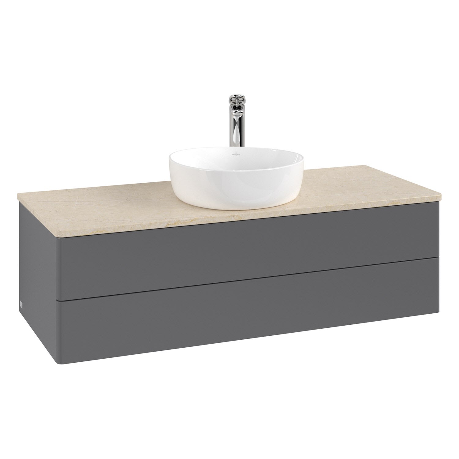 Villeroy & Boch Antao Waschbeckenunterschrank, 120 x 36 cm, 2 Auszüge mit LED-Licht, Front ohne Struktur, mit Hahnloch, für Waschtisch mittig