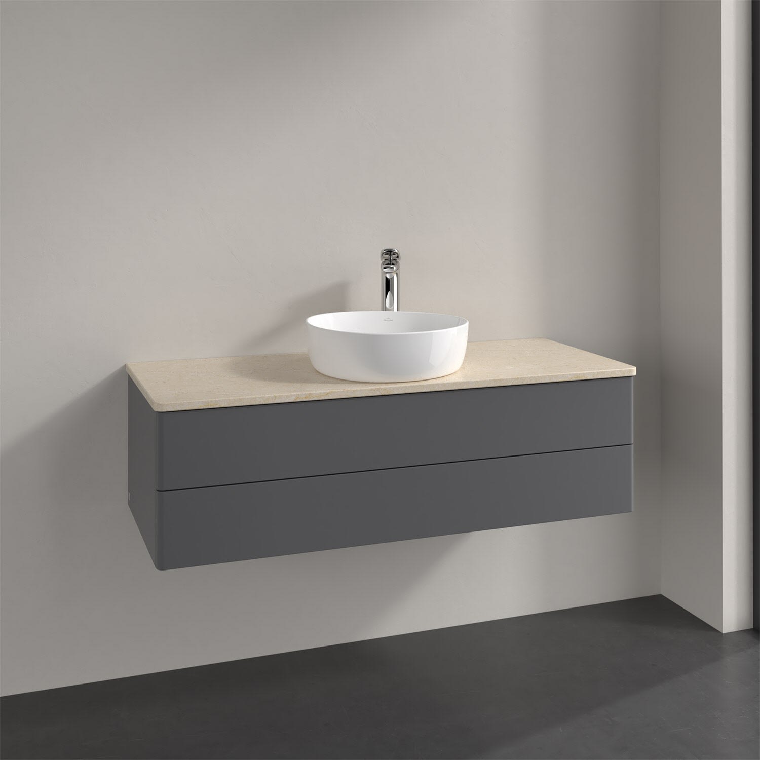 Für diesen Waschbeckenunterschrank stehen Ihnen Aufsatzwaschtische aus verschiedenen Serien zur Verfügung (siehe "Passliste" unter Downloads). Ein ausgewähltes Beispiel finden Sie im Zubehör. Den Waschtisch bitte separat mitbestellen.