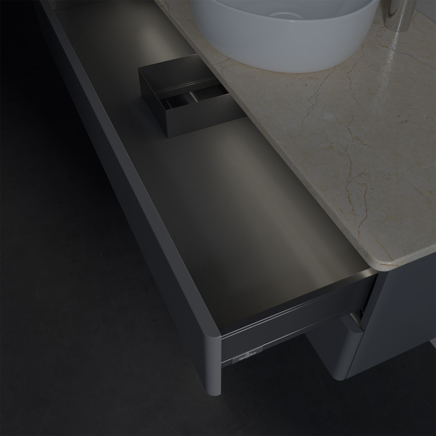 - kein Umfallen oder Verrutschen von Pflegeprodukten in den Schubladen dank rutschhemmendem Boden