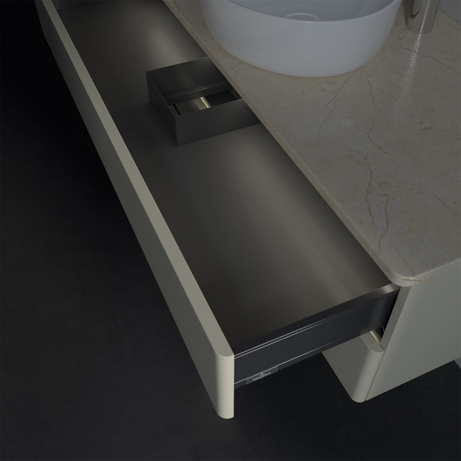 - kein Umfallen oder Verrutschen von Pflegeprodukten in den Schubladen dank rutschhemmendem Boden