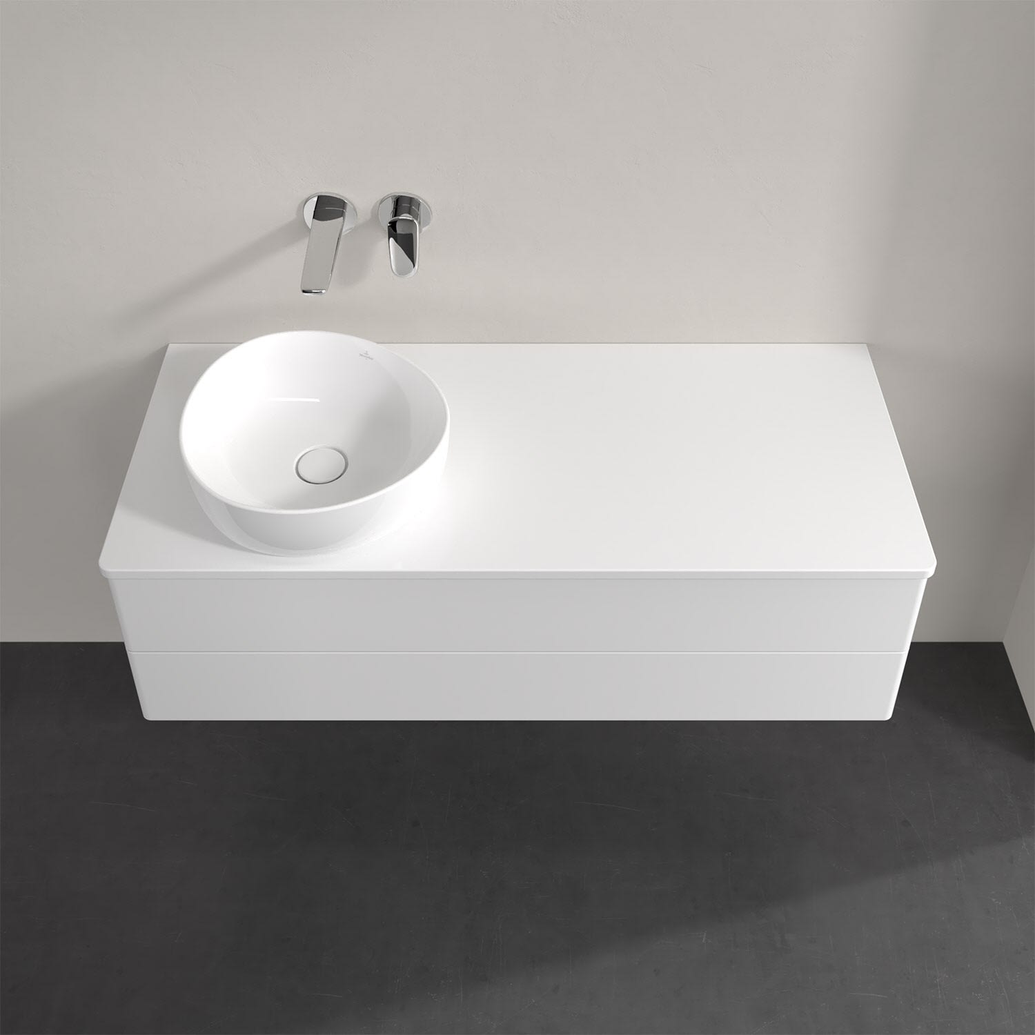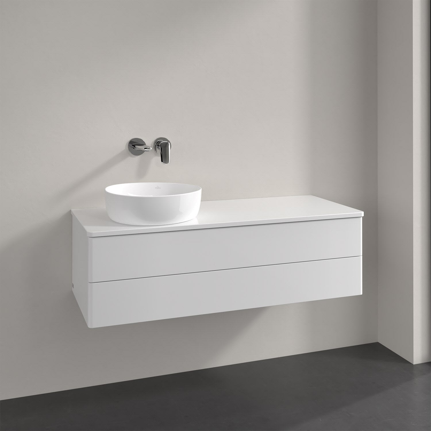 Villeroy & Boch Antao Waschbeckenunterschrank, 120 x 36 cm, 2 Auszüge mit LED-Licht, Front ohne Struktur, mit Hahnloch, für Waschtisch links