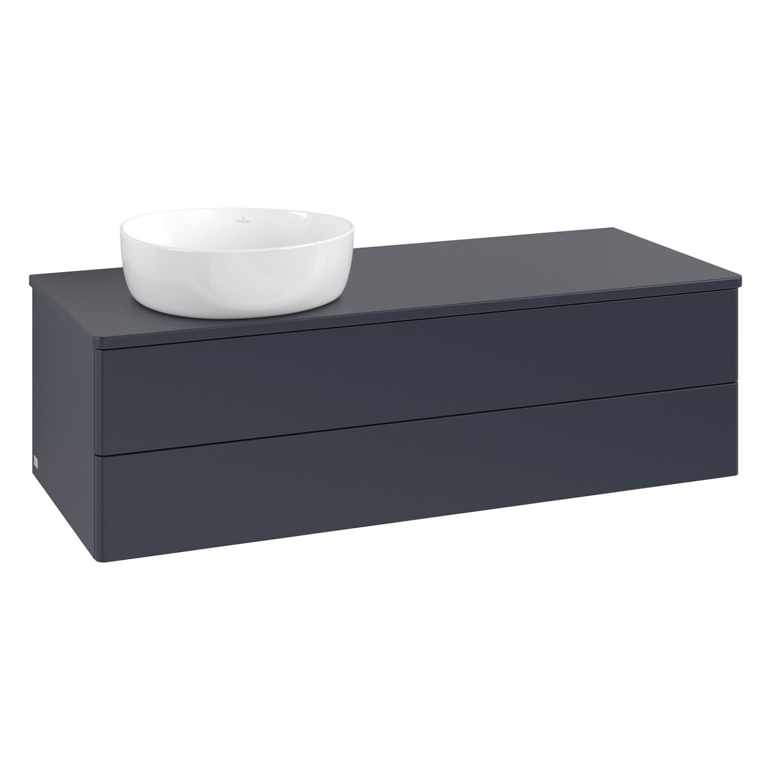 Villeroy & Boch Antao Waschbeckenunterschrank, 120 x 36 cm, 2 Auszüge mit LED-Licht, Front ohne Struktur, mit Hahnloch, für Waschtisch links