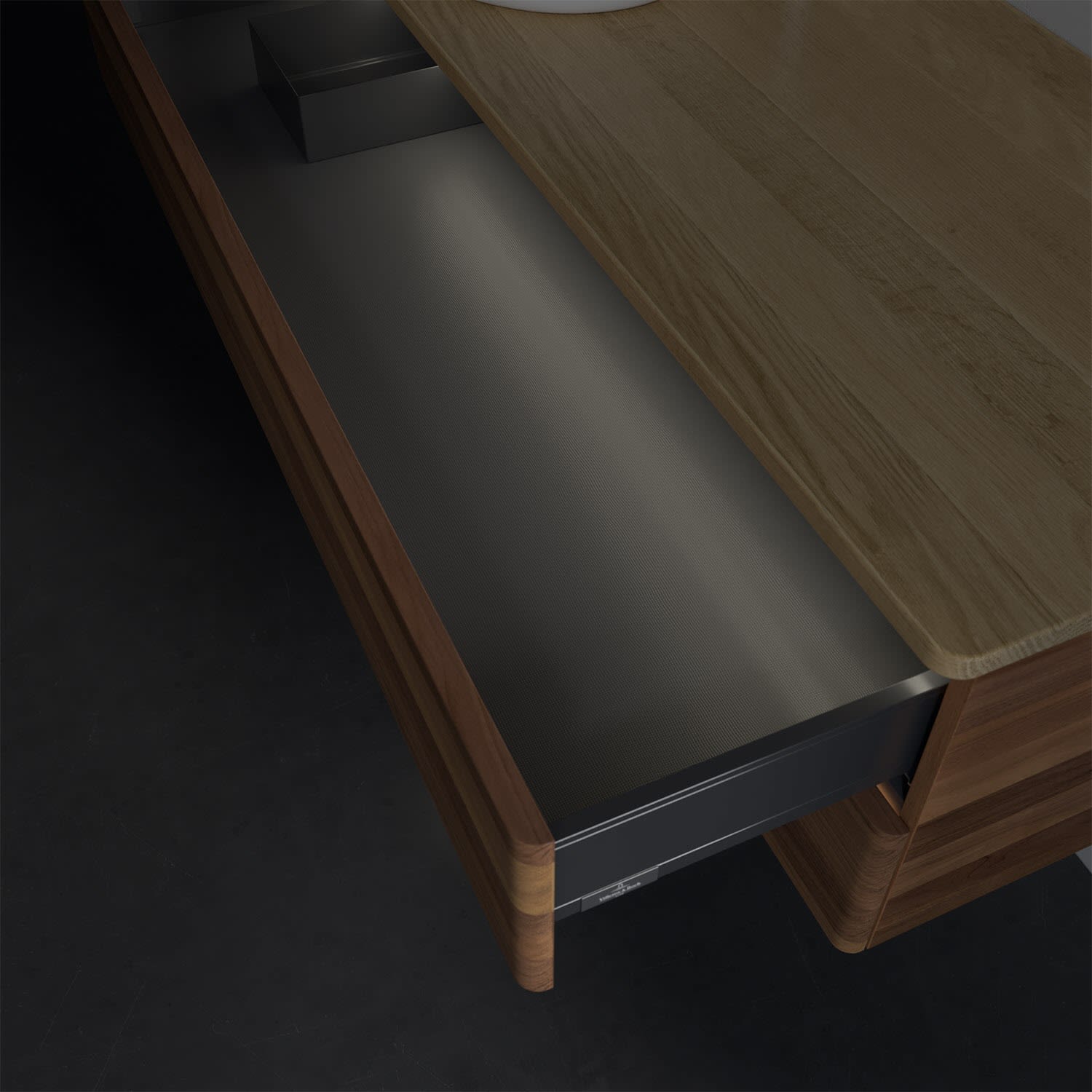 - kein Umfallen oder Verrutschen von Pflegeprodukten in den Schubladen dank rutschhemmendem Boden