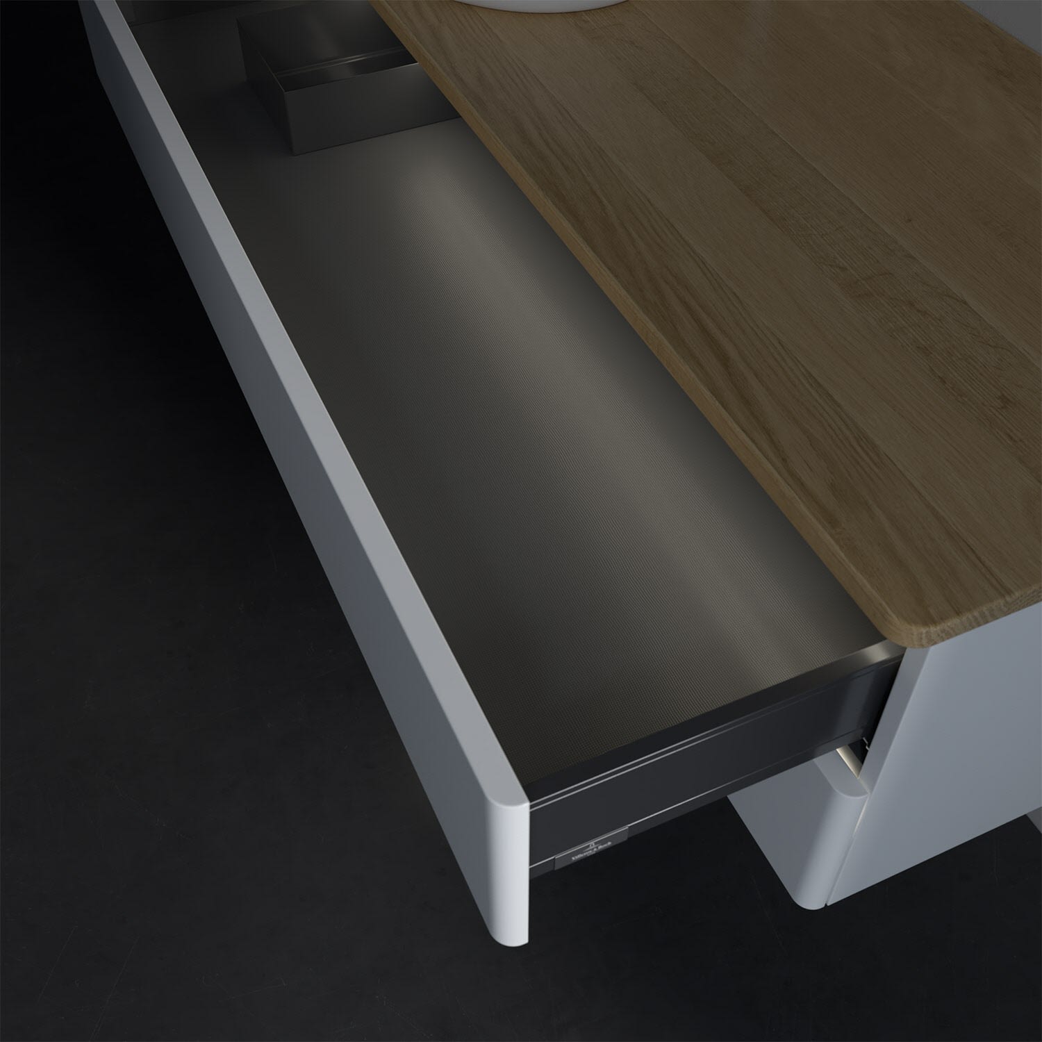 - kein Umfallen oder Verrutschen von Pflegeprodukten in den Schubladen dank rutschhemmendem Boden