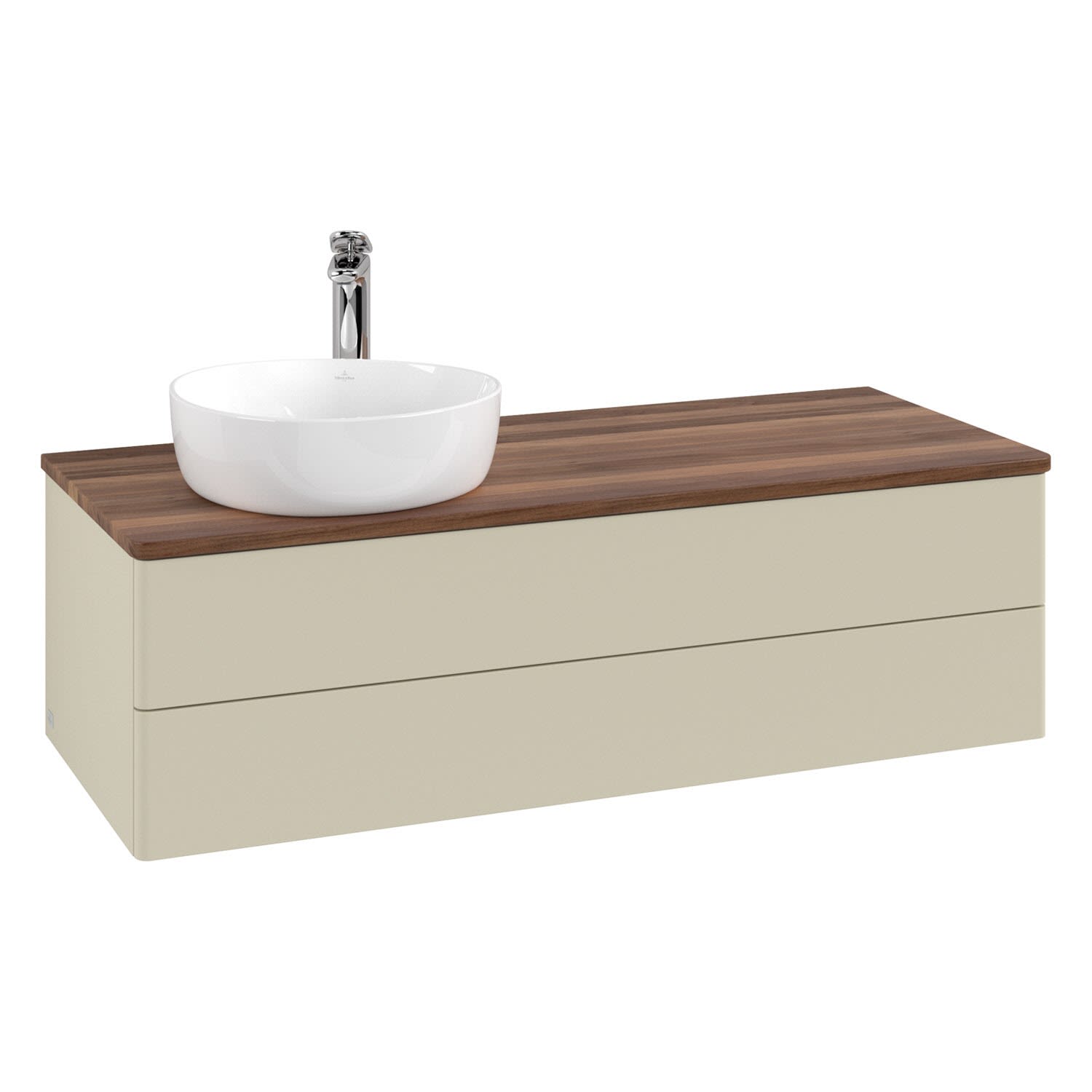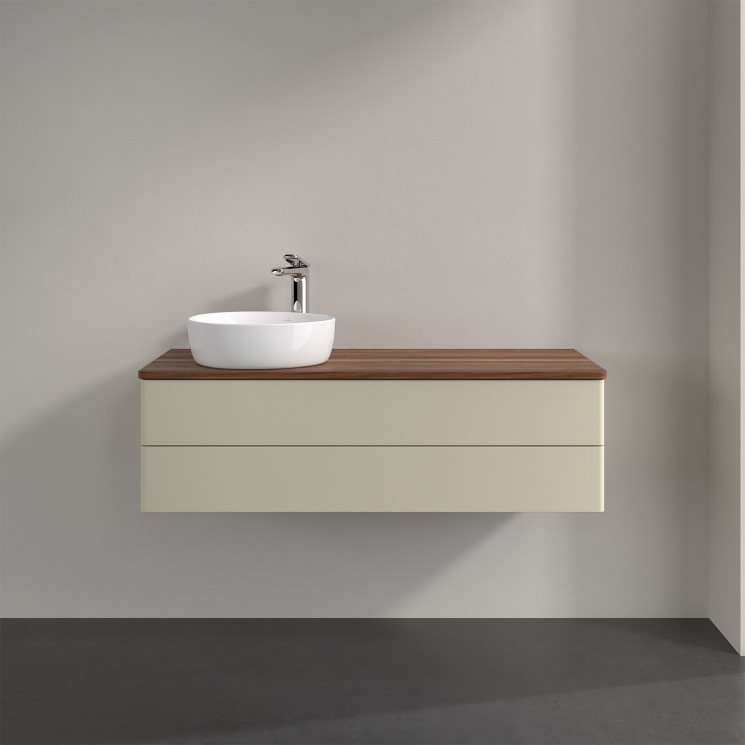 Villeroy & Boch Antao Waschbeckenunterschrank, 120 x 36 cm, 2 Auszüge mit LED-Licht, Front ohne Struktur, mit Hahnloch, für Waschtisch links