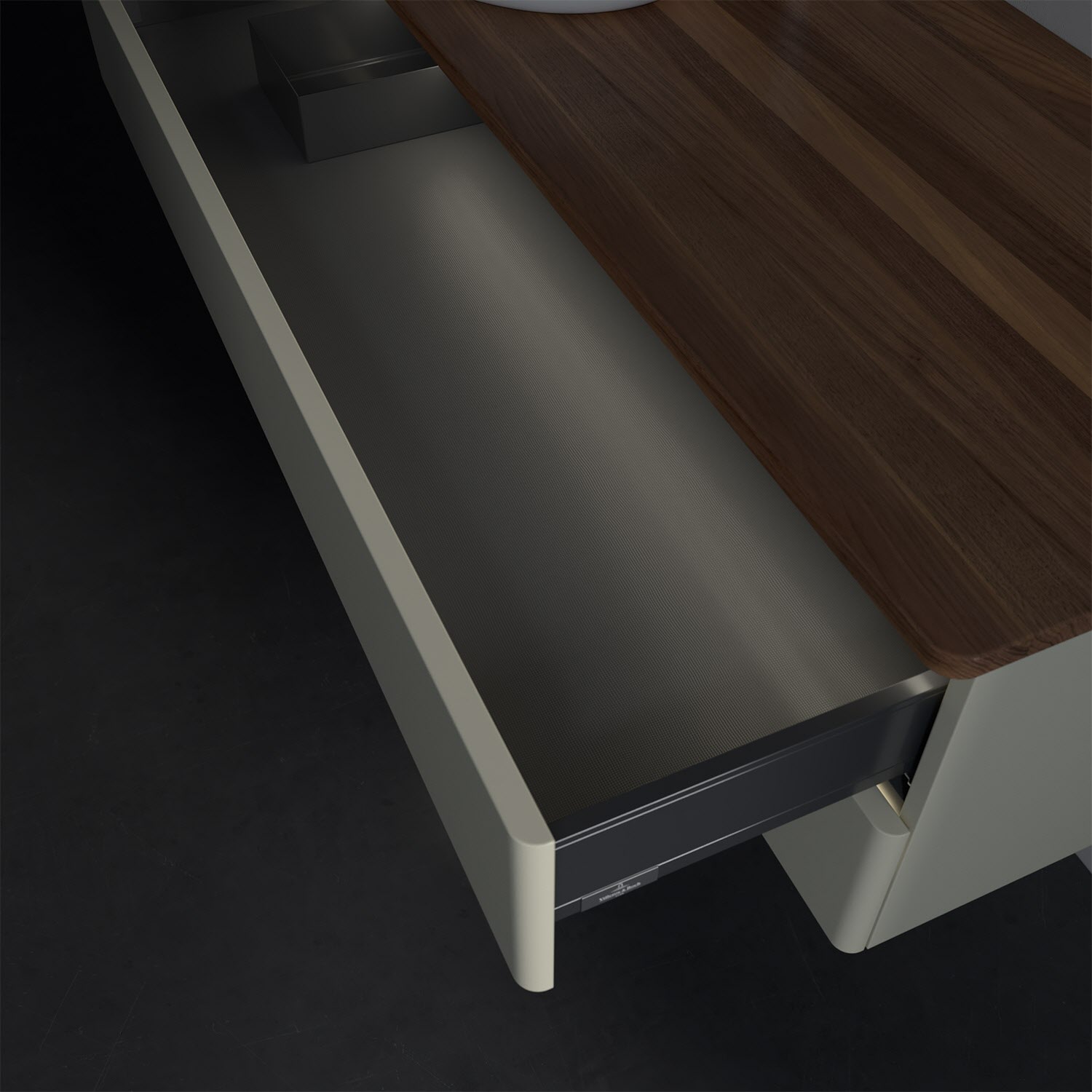 - kein Umfallen oder Verrutschen von Pflegeprodukten in den Schubladen dank rutschhemmendem Boden