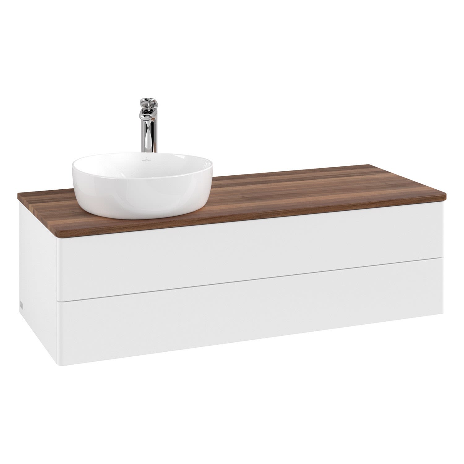 Villeroy & Boch Antao Waschbeckenunterschrank, 120 x 36 cm, 2 Auszüge mit LED-Licht, Front ohne Struktur, mit Hahnloch, für Waschtisch links