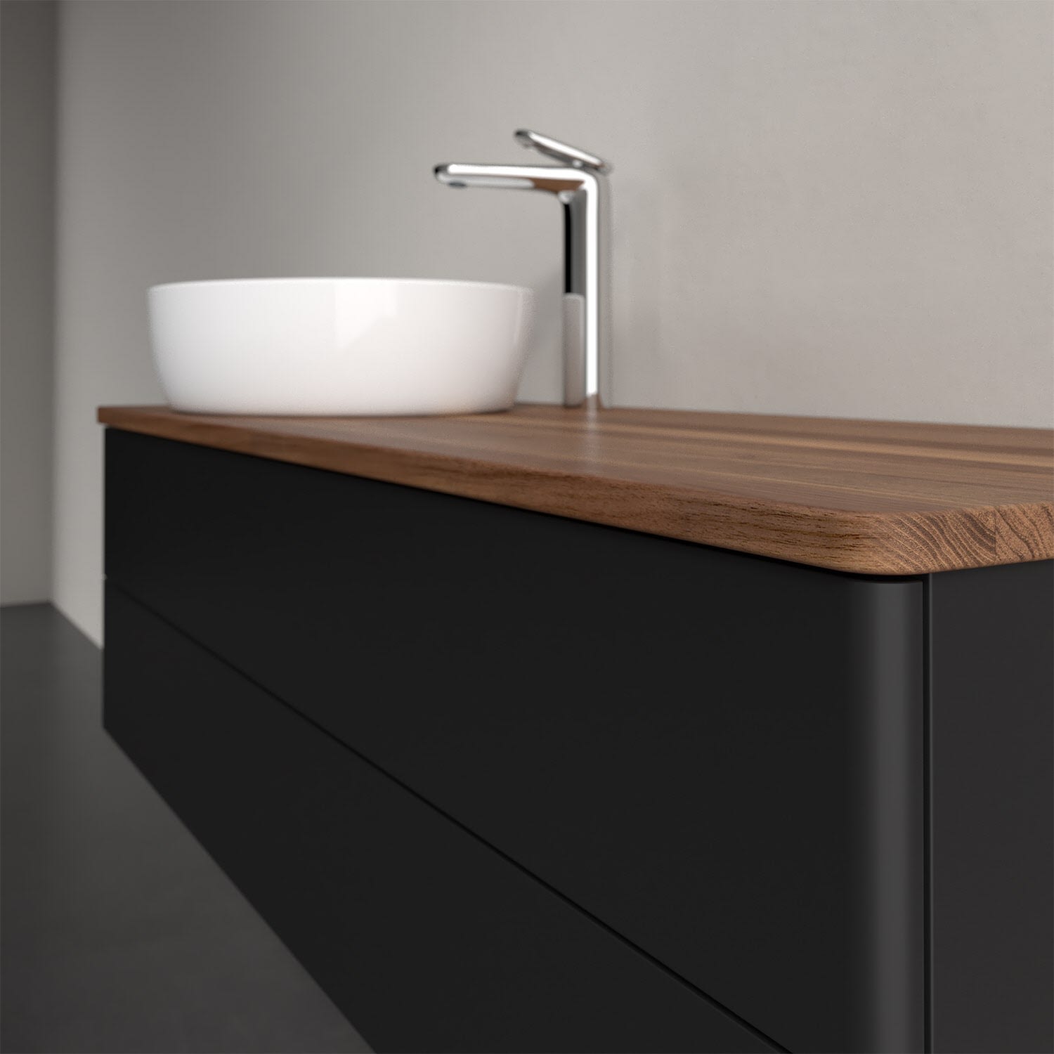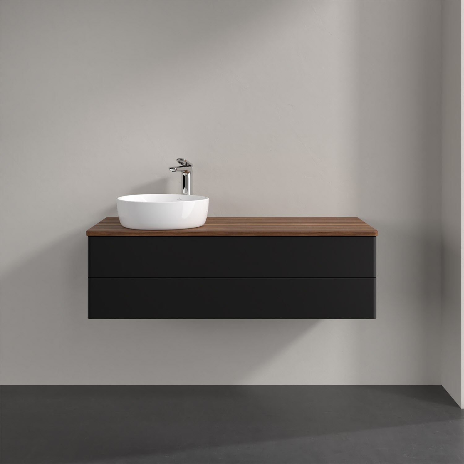 Für diesen Waschbeckenunterschrank stehen Ihnen Aufsatzwaschtische aus verschiedenen Serien zur Verfügung (siehe "Passliste" unter Downloads). Ein ausgewähltes Beispiel finden Sie im Zubehör. Den Waschtisch bitte separat mitbestellen.