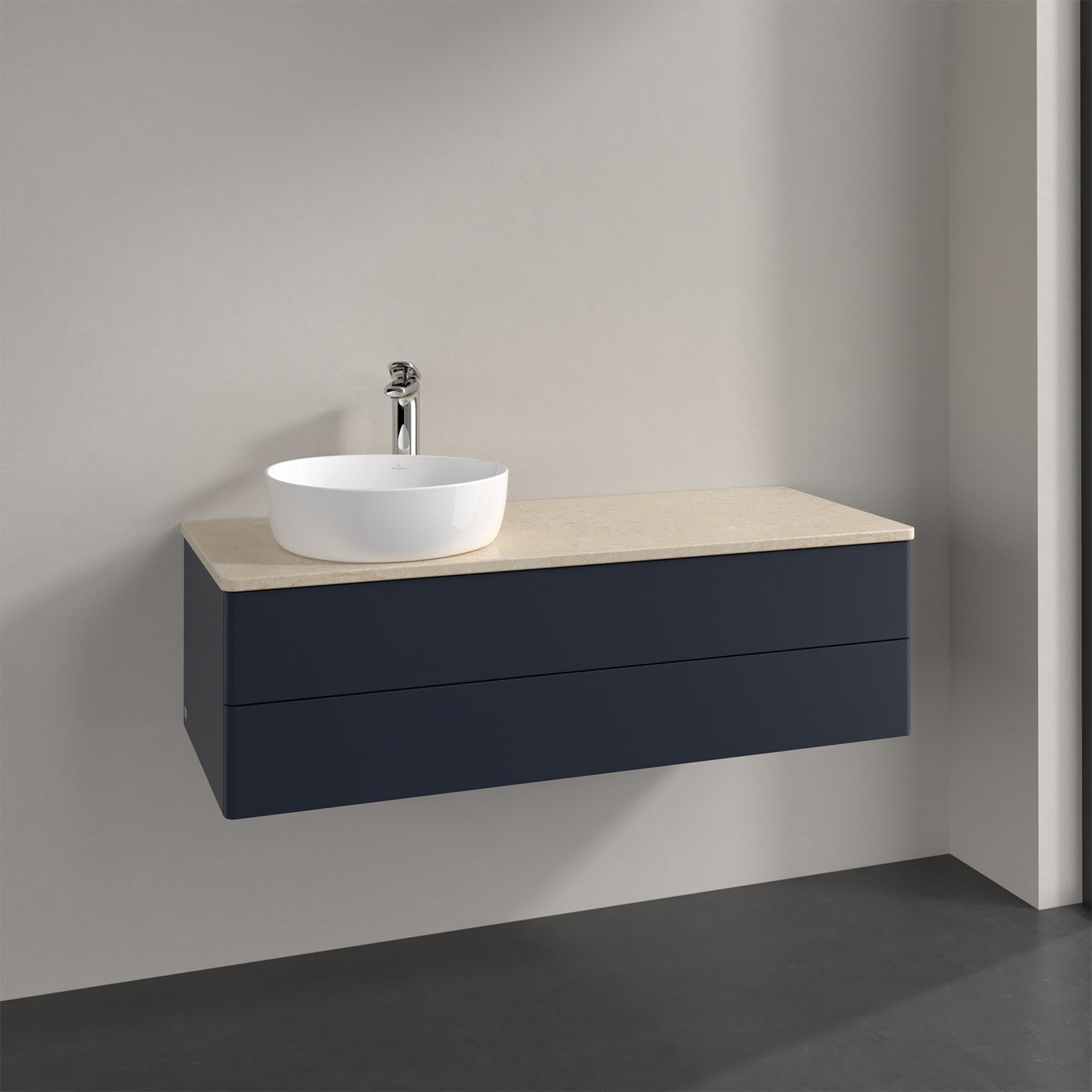 Villeroy & Boch Antao Waschbeckenunterschrank, 120 x 36 cm, 2 Auszüge mit LED-Licht, Front ohne Struktur, mit Hahnloch, für Waschtisch links
