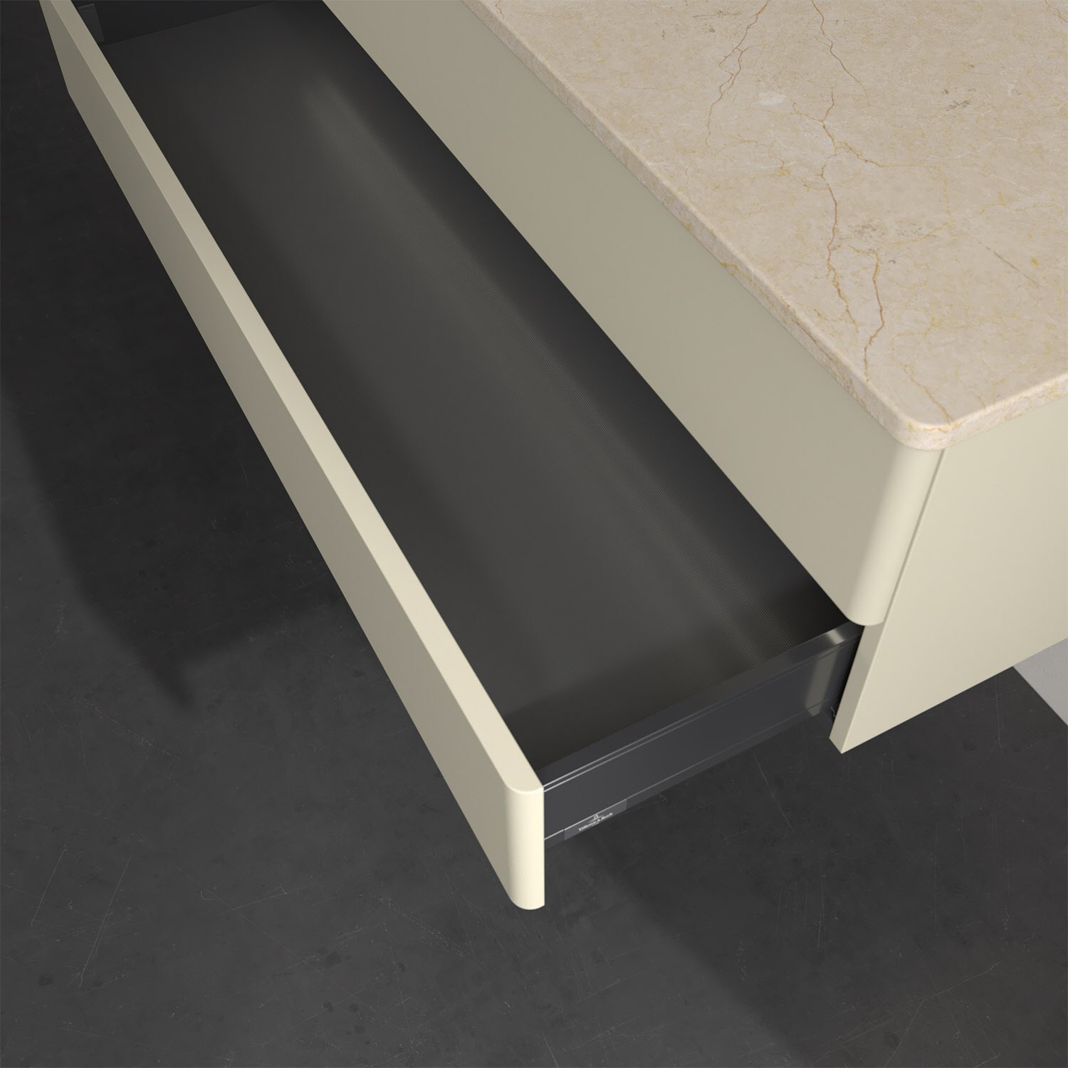 - kein Umfallen oder Verrutschen von Pflegeprodukten in den Schubladen dank rutschhemmendem Boden