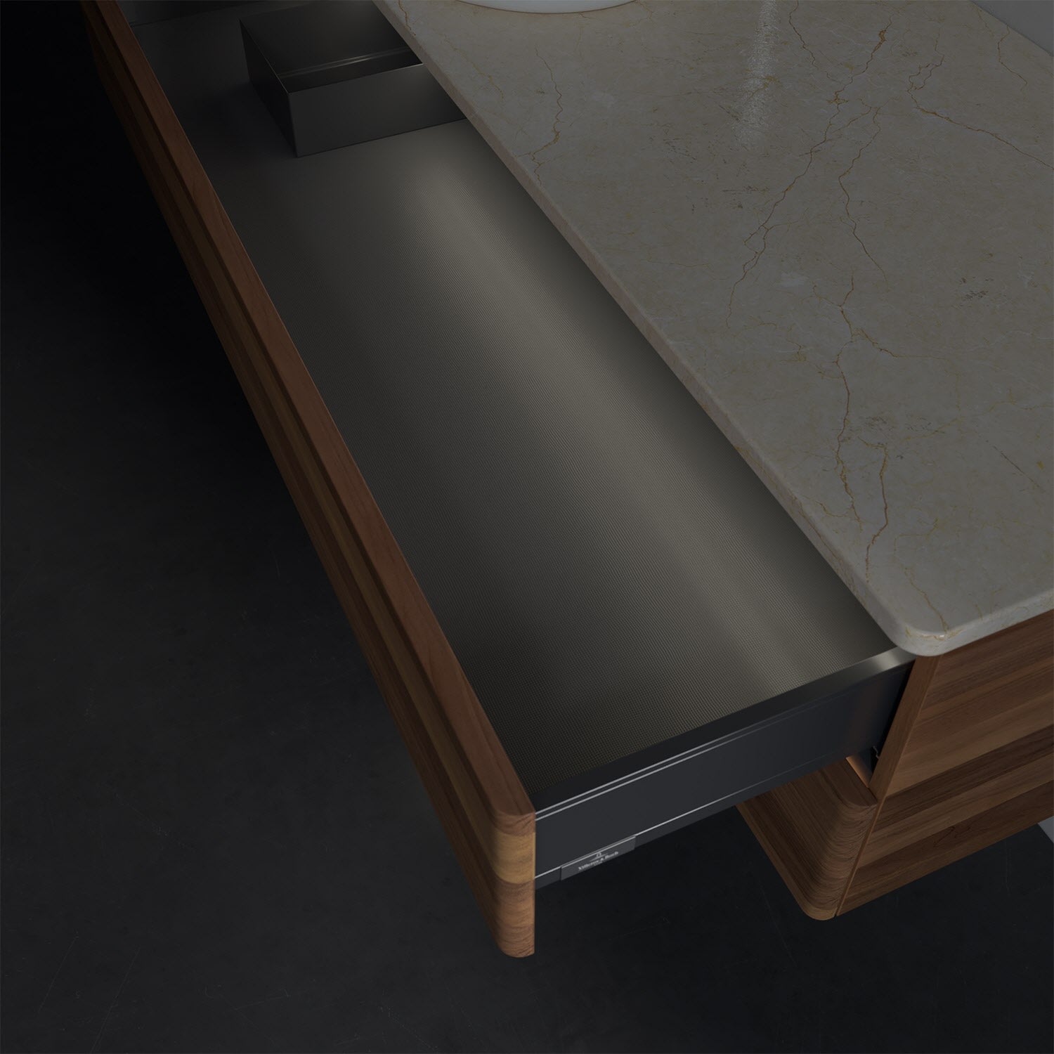 - kein Umfallen oder Verrutschen von Pflegeprodukten in den Schubladen dank rutschhemmendem Boden