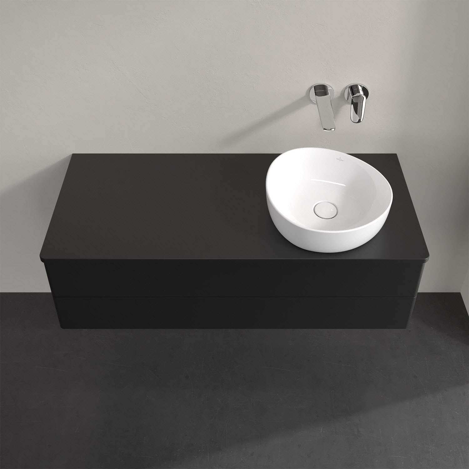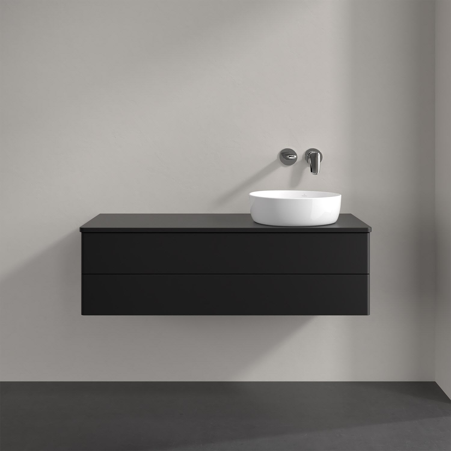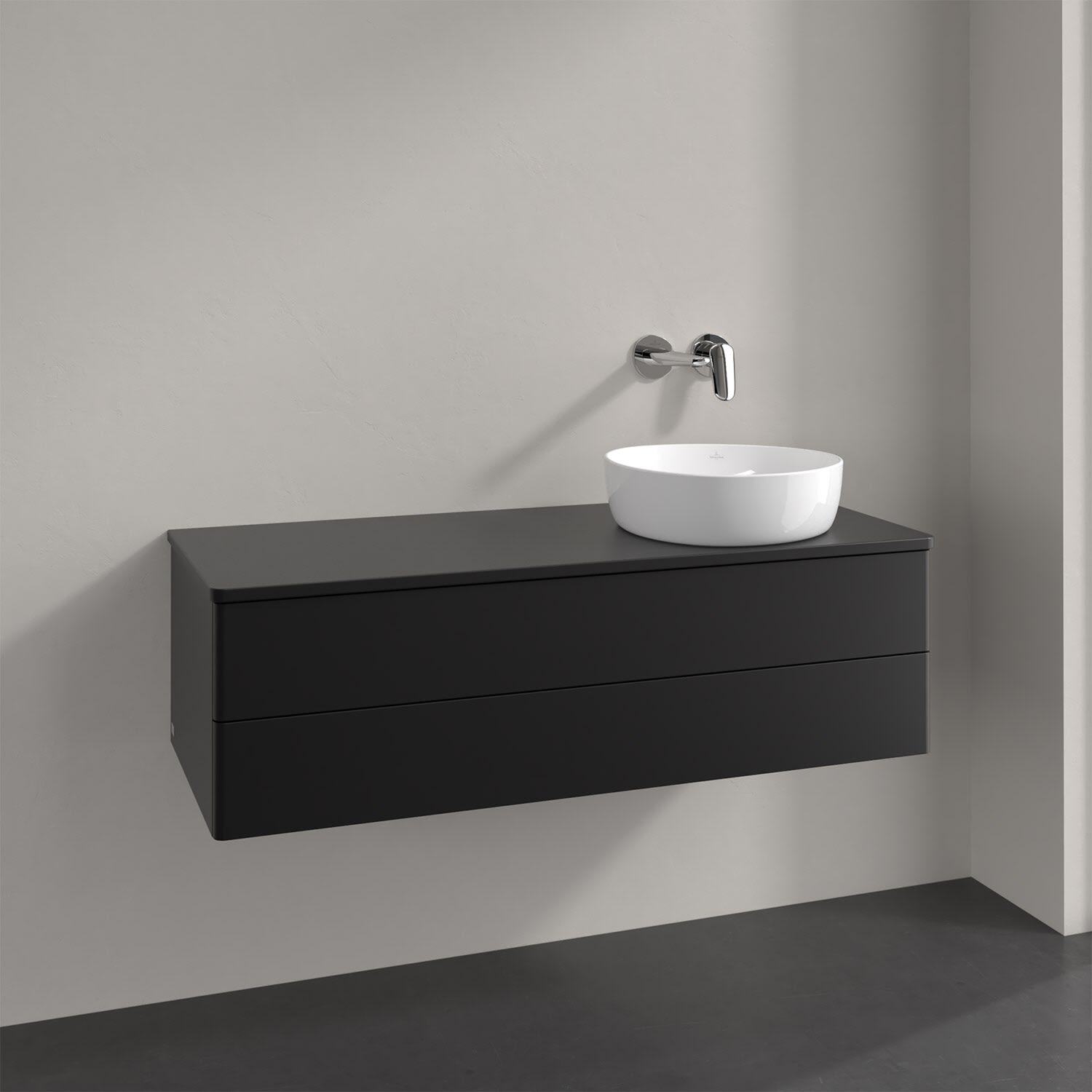 Villeroy & Boch Antao Waschbeckenunterschrank, 120 x 36 cm, 2 Auszüge mit LED-Licht, Front ohne Struktur, mit Hahnloch, für Waschtisch rechts