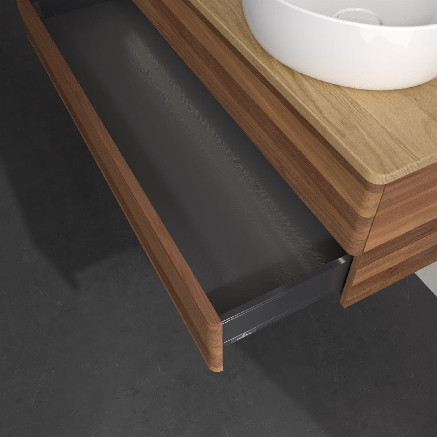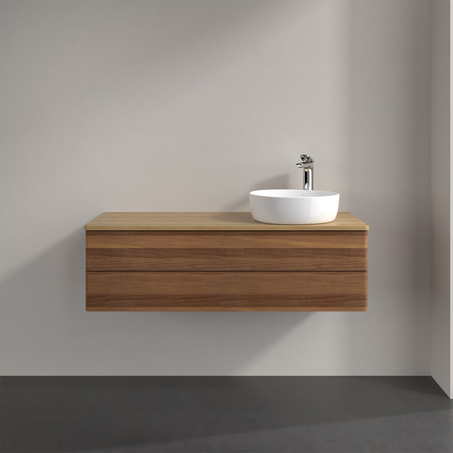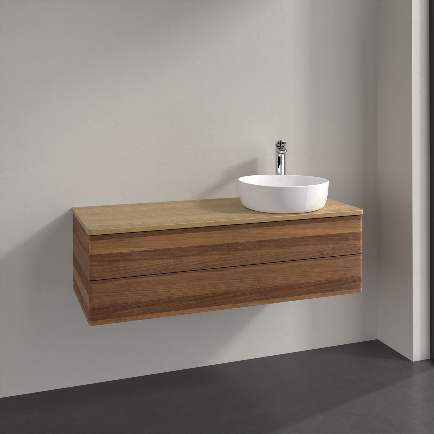 Villeroy & Boch Antao Waschbeckenunterschrank, 120 x 36 cm, 2 Auszüge mit LED-Licht, Front ohne Struktur, mit Hahnloch, für Waschtisch rechts