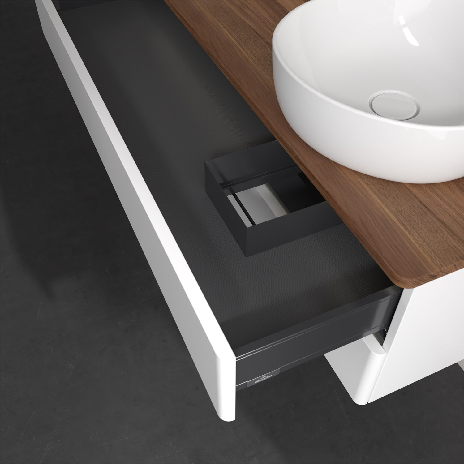 Villeroy & Boch Antao Waschbeckenunterschrank, 120 x 36 cm, 2 Auszüge mit LED-Licht, Front ohne Struktur, mit Hahnloch, für Waschtisch rechts