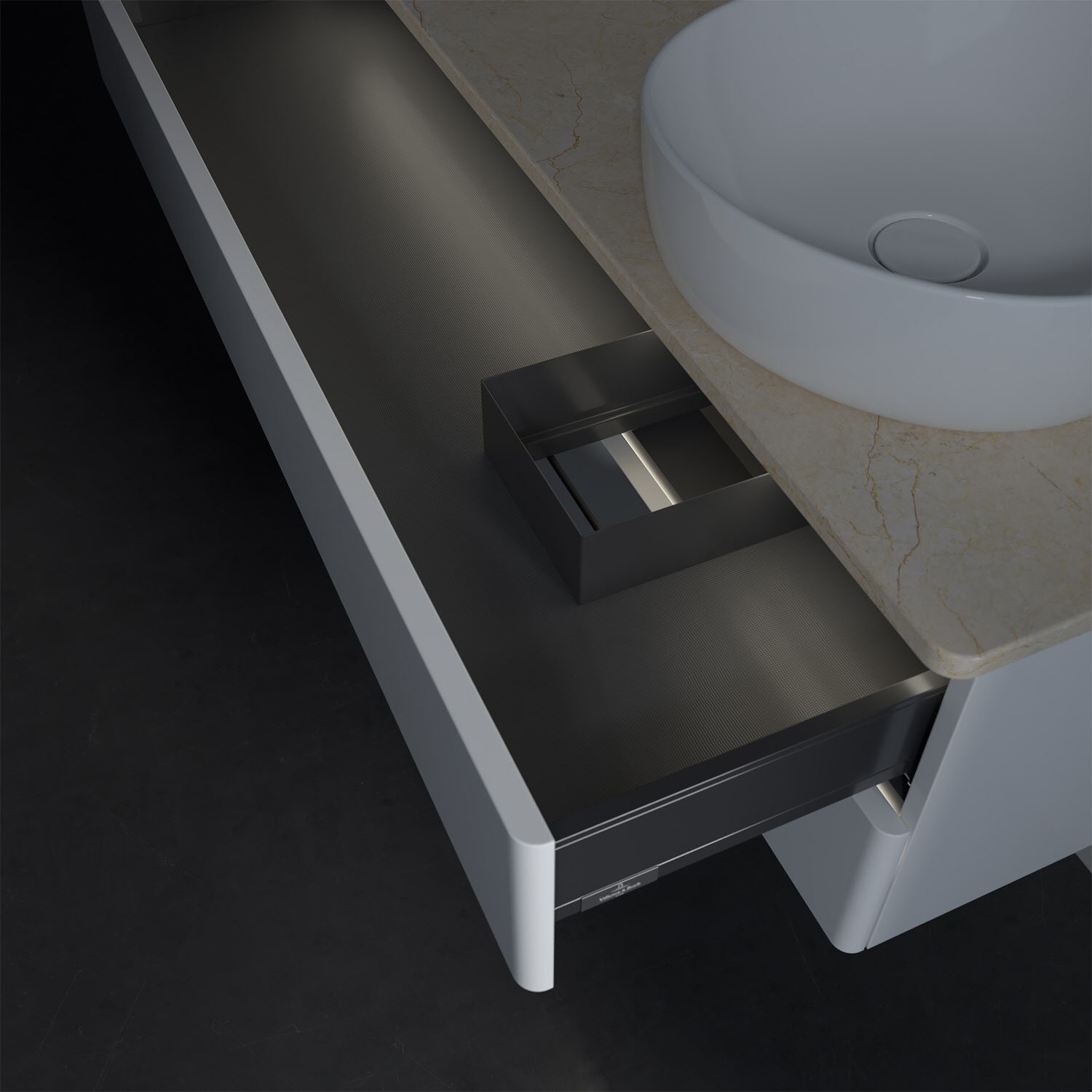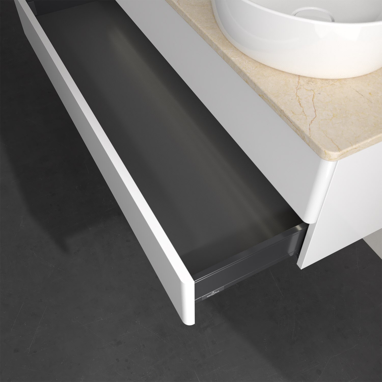 - kein Umfallen oder Verrutschen von Pflegeprodukten in den Schubladen dank rutschhemmendem Boden