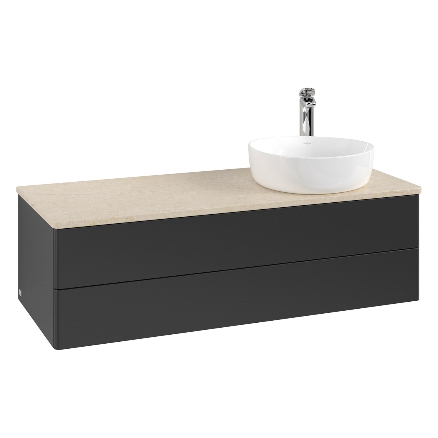 Villeroy & Boch Antao Waschbeckenunterschrank, 120 x 36 cm, 2 Auszüge mit LED-Licht, Front ohne Struktur, mit Hahnloch, für Waschtisch rechts
