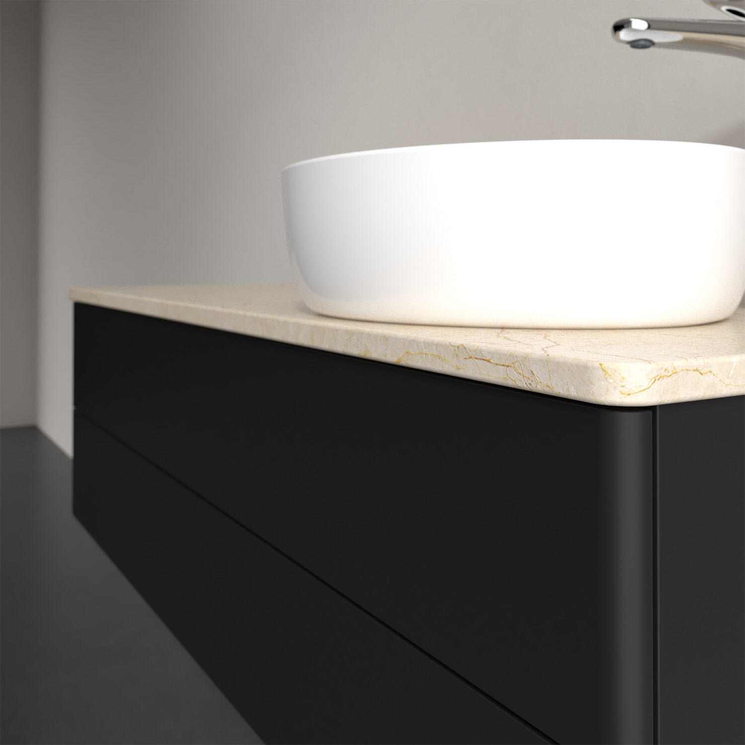 Für diesen Waschbeckenunterschrank stehen Ihnen Aufsatzwaschtische aus verschiedenen Serien zur Verfügung (siehe "Passliste" unter Downloads). Ein ausgewähltes Beispiel finden Sie im Zubehör. Den Waschtisch bitte separat mitbestellen.