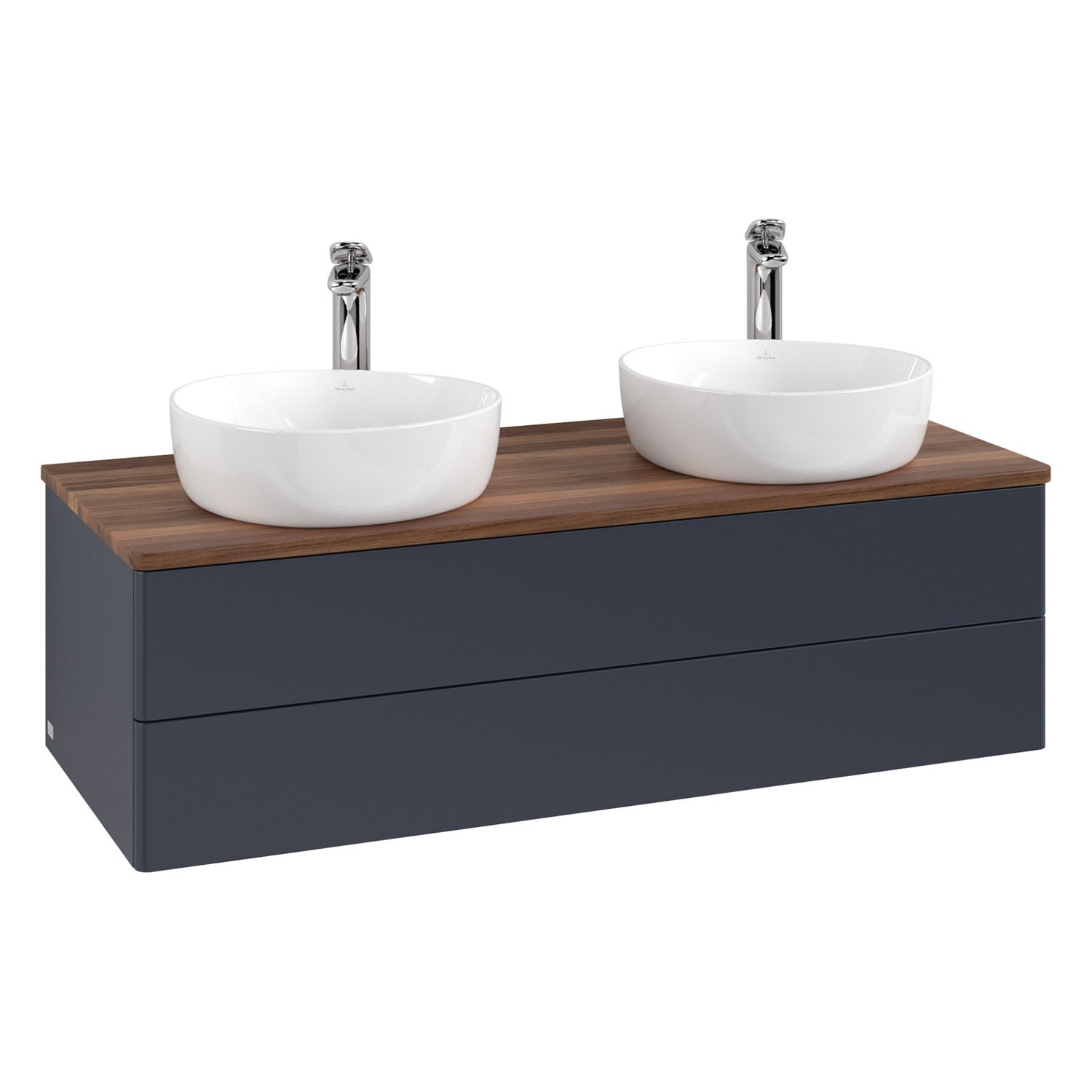 Villeroy & Boch Antao Waschbeckenunterschrank, 120 x 36 cm, 2 Auszüge mit LED-Licht, Front ohne Struktur, mit Hahnloch, für Waschtisch links und recht