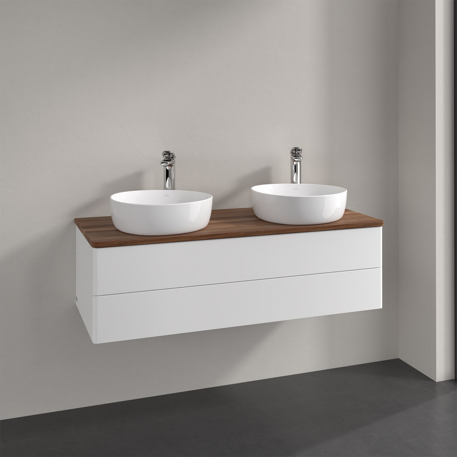 Villeroy & Boch Antao Waschbeckenunterschrank, 120 x 36 cm, 2 Auszüge mit LED-Licht, Front ohne Struktur, mit Hahnloch, für Waschtisch links und recht